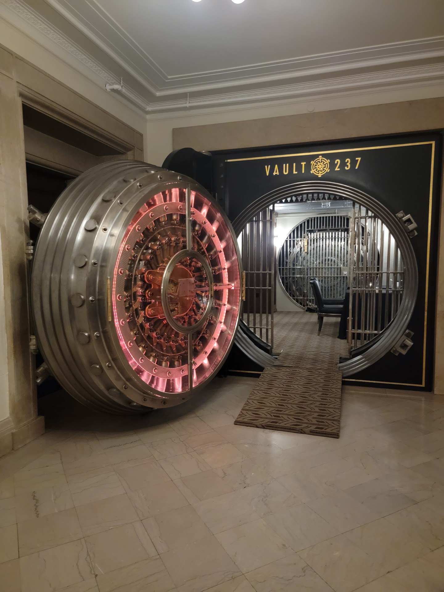 Me and my Girlfriend we so excited to try this place out for our anniversary dinner, we were hearing good things and it seemed like an eloquent establishment to enjoy an exceptional meal, boy was I wrong. We made our reservations for 8pm and got there early, we arrived to find an apartment style building with elevators and absolutely no signs or evidence that this place existed, after a couple moments of shouting ideas at each other about where the location might be (this was due to an extremely loud and boisterous wedding party going on right in side this strange area) we were directed to the side entrance of the restaurant, we had noticed the door was stuck and had to call the restaurant and tell them we were here for our reservations, and there was no one to greet us, and no one to seat us for 2-3 minutes. At this point everything seemed extremely unorganized, unofficial and very unprofessional, it got worse unfortunately. We were finally seated and our drink order was taken, 10-15 minutes later we got our drinks and 20-30 minutes later we finally got our appetizers, these appetizers were the best food items I consumed from this establishment, this is because when we finally got our entrees; Mine the $50 steak entree that must have been plated by someone’s child and was extremely one note, every thing was extremely salty and just over the top with the savory flavor to the point where hastily drank 2 cups of water without even making a quarter of my way through the meal. Truly the plating was terrible, I mean my steak was sitting right on top of my mixed up green beans and potatoes bites that were all soggy and salty because of the steak juices. The plate didn’t even seem able to hold all the food properly because it was an absolute mess to eat. Now to my partners dish, when we received the entree it was a touch away from cold 😅 and at this point we were just happy to have something edible infront of us because I had gave up on the overpriced and under thought $50 excuse of a steak dish I simply couldn’t finish, so on to the shrimp and crab pasta! And yet again we were let down, as I stated this dish was barely warm, and was lacking flavor all throughout, the only flavor that came from the dish was from the slightly overcooked shrimp, the noodles tasted as if they were cooked then seasoned and promptly washed off and then tossed in a bowl. we both did not finish our entrées, and we both did not order dessert nor ask for a tour of the vault, besides all the negative experiences that we went through with, just trying to find the place and trying to enjoy some apparently “high-quality” food I have to stay without a doubt my biggest complaint that I have of this establishment is that it really seems like it presents itself as a prestigious and classy place to eat, the entire two hour time I spent there there was three different birthday parties of customers that were definitely too intoxicated to be there, rather intoxicated to be anywhere probably, this led to my and my partners conversations constantly being interrupted, by loud overzealous screaming and extremely loud, drunk conversations or drunk, screaming matches with other diners, I just expect at a place that I am paying more than $100-200 for what is supposed to be a exquisite dining experience to NOT have the atmosphere of a club on the Jersey shore. I also want to make this abundantly clear that not once throughout the entire night me nor my partner said anything negative or anything mean nor degrading or anything that even could be considered of giving any sort of attitude of being ungrateful, I also wanna make it clear that none of my complaints are being directed towards the waiters and or waitresses. They are doing the best that they can in what seems to be an obviously understaffed team, and we were very appreciative of everything that they did for us. In conclusion, we were severely letdown by the vault and we are hoping that you guys find the correct audience to market to, wishing all the best of luck who have a hand in this...
