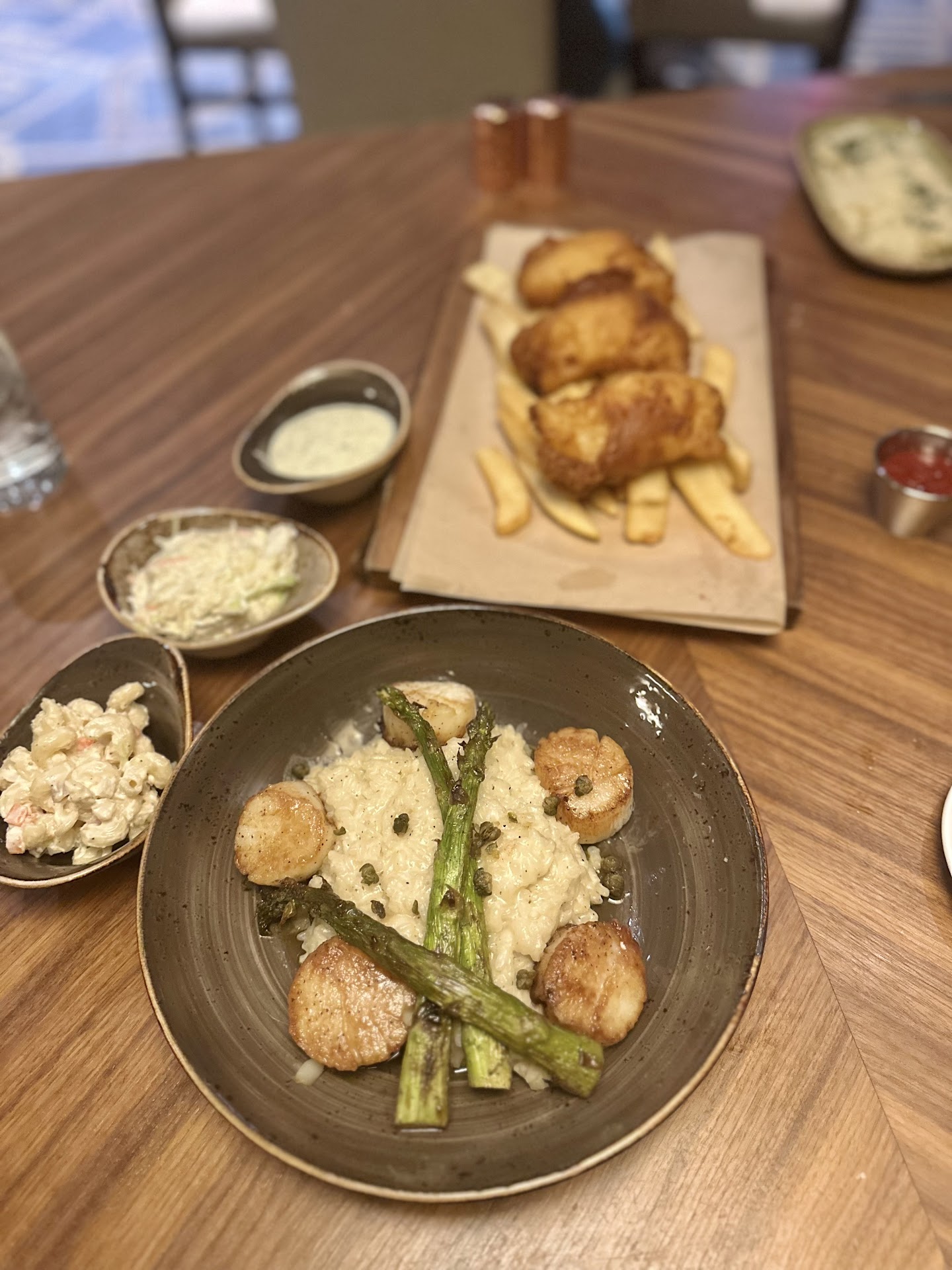 Read moreAt the WD Bar and Grill, we initially had a frustrating experience waiting for a server for 40 minutes, which led us to leave. However, they later called us to apologize for the inconvenience and offered us a free meal. During our next visit, their impressive plating skills and great hospitality, along with attentive servers, made for an unforgettable experience. The perfectly seasoned scallops, the best risotto I've ever had, and the fantastic prime rib made the meal well worth it.
