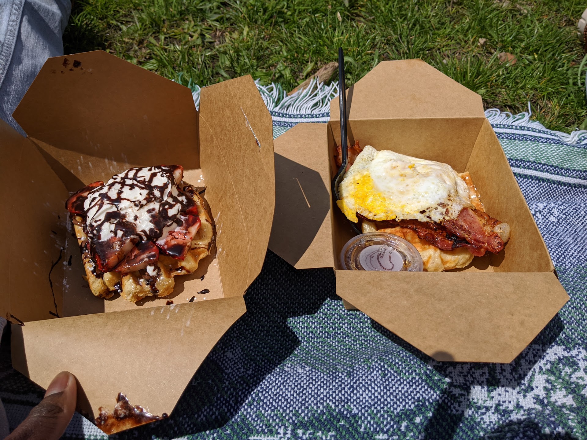 Ā Ā Ā Read moreDrive through leige waffles!! Ordered a "Captain Obvious" and, "I mean, Duh." Captain obvious is waffle+syrup, eggs and bacon. The waffle was really well done. If you've never had leige waffles this is a good place to start! They're denser, chewier, and sweeter than the waffles you're used to. The egg was fried, no runny yolk and they didn't ask how I wanted it. The bacon was very good. My only real problem was the syrup which was the fake maple flavored corn syrup. I did really enjoy my breakfast.
