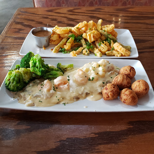 Read morewith all the good reveiws im reading ..my god...i had to have been there on the wrong night...or should i say off night...first of all it was a saturday night around 7pm...we thought it would be swamped...not be familer with the place...there was no wait....strait to our table of choice...and there was many to choose from....i was suprised or should i say shocked...waittress was already there to take our order...we ordered very quickly....my friend had a salad and fried chicken tenders...i had the...forgot the name of it....anyway...i love seafood...and it was the most costly meal....seafood feast ...or somthing .....when they brought it out ...for the price...there wasnt much on my plate...only 2 hush puppys the size of a gum ball...there were ok...tasty...the osters were tini tiny...but pretty good b+ ..cole slaw was awesome..no dout....sweet potato fries were ok..pretty good...i didnt like the sugar they put on top ....i like garlic and pepper...ok now for the really bad news...brace yourself....i added fried claims for 3 mor e dollars....get this....i got 5 or 6 burnt claim strips...they were left on my plate...didnt pay for them...my fish didnt look like fish...it was flat,wet,and mushy....i think i ate 2 or 3 bites....and it was burnt....and the worst of all was there crab cake...i swear i was about to puke walking out..i cant believe i took a bite...raw sour bad....whitish gray in color....i tasted my friends chicken it was awesome.....and i liked the way the place looked....very clean and you feel like your on the beach....and they have a very nice bar...like i said at the start...maybe i was there on a off night...maybe i will give it another try.....i just wont order the same thing...lol ...