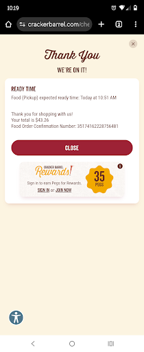 Read moreThis was the first at this location & for a Thanksgiving dinner anywhere but home & most likely the last time we eat at a Cracker Barrel unless we find one in metro-Atlanta that's decent - if not, we'll wait til we visit family/friends in PA. We were forced to move out of the home we were in for 5yrs (landlord broke lease that was signed/renewed on 6/3/22 ending 5/31/23) and with the move we've ran into things that needed fixed/ replaced at new (rental) home not to mention my husband dealing with a couple big kidney stones. Therefore, with Thanksgiving we decided to eat out & see a movie. We've been told that Cracker Barrel had a good dinner & we haven't eaten at one upon our move to GA 5yrs ago. For starters, as nice as the waiter was, I think he was new and a little clueless. I felt for him, as a customer & former restaurant server/hostess. My coffee mug was dirty, so I had to ask for another. A girl brings out new cup with coffee & says they've been busy & having trouble with cleaning dishes - not her exact words as they were more ignorant. Still no utensils or napkins. We ordered & they had no sweet potato casserole or sweet potato anything, I asked for the sliced apples as an upcharge instead of the cranberry relish & wanted brown gravy for turkey & mashed potatoes. My son ordered 2 sides of fries with fried turkey. Meals come - still no utensils, but the cornbread dressing is dry like sand - literally, mashed potatoes, turkey, carrots, gravy are either lukewarm or cold. I ate a couple of bites of turkey & mashed potatoes (yuk) & moved quickly to the carrots as those I can eat cold, warm etc. My husband ordered the same as me except he has mac & cheese instead of potatoes & said the macaroni was "ok" but cold kraft dinner would've been better. What is going on here?!? They were overwhelmed & I believe they should've taken reservations because they simply could not keep up at all. Tables were dirty, even after they cleaned them, it was just gross. The pumpkin pie slices we got & brought home weren't even cut right & one was missing 90% of the crust, the best part. The slices together made 1 slice so I told my husband he could have mine. I'm not a big pumpkin fan - I love apple pies & anything apple but they didn't have any & novother kind of desserts for that matter. We paid $14.99/person, I never did get apple slices. This was beyond the worst experience ever especially on a holiday! We just wanted a break from the stress that we've endured since 10/21/22. #LetsGuide #ThanksgivingDinner2022 #Thanksgiving #Buford #CrackerBarrel #CrackerBarrelBuford...