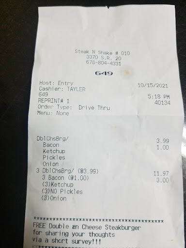 Read moreI ordered something simple. The computer screen said the combo had fries and a drink. I ordered a small, very small chili, 2.49. I was told that the 2.49 was for the premium side of Chilli. I was told that if I wanted fries, order them. I eat at other Steak and Shake places often. I have NEVER been treated this rude. I spent 18.79 for a meal and Shake. This employee wanted to man up in front of his buddies working. Really. This isn't over. I have asked 2 other locations and the manager said they see why the confusion but with that big of an order, they should have just added the fries. Cussing at me and laughing with the staff was wrong. I didn't get my Shake either. I had to ask twice. I was so afraid to eat it, I threw it away. They could have spit in it or added some items, other than Snickers. I will keep trying to find some good corporate person at S and S and fix this problem. This is totally unexcusable. This employee needs to go and the store needs a refresher on customer service. I can only imagine how they would treat an elderly couple. It would scare them. This store had friends of the staff just hanging out and using bad language. For full disclosure, I used bad language after I was told, " order some damn fries and pay for them if you want fries." I was just trying to get a small fry like the computer screen said. I don't want money or free food. I want the employee gone and the manager to be fixing his staff and abiding by the rules. Having young people, smoking weed in the parking lot, hanging out in the store says about everything. Then a regular paying customer gets treated like this. FIX IT. There isn't a negative for customer service but this really sucked. Luckily the Patty Melt was its usual great tasting self. I don't know about the Shake. I threw it out because it was in the back with the staff after they had laughed and insulted me. Tampering with food is an assault charge, since I don't think that the weed smoking public wants the cops at this...