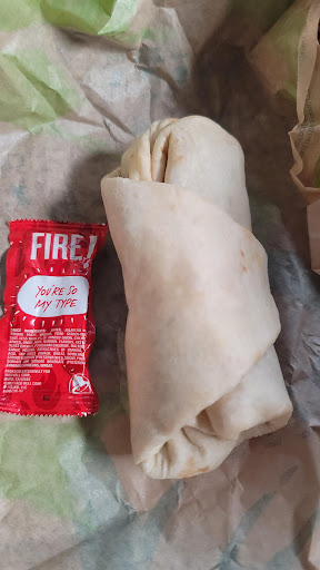 I uploaded a picture of my "grilled cheese" burrito. Sauce packet for size reference, laughable.