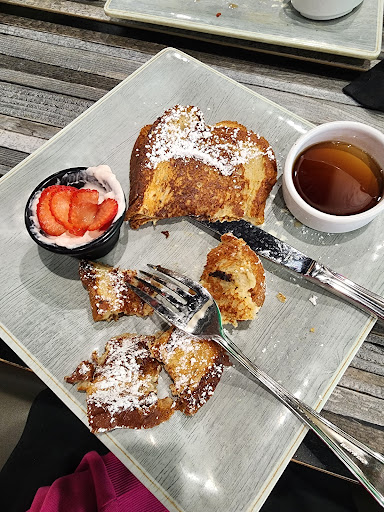 Read moreOverall, the atmosphere is very soothing and quiet. And the waiter was a sweetheart. I had the strawberry cream cheese French toast with a orange juice infused mimosa. My partner had the chocolate almond French toast, scrambled eggs, bacon, and a side of sausage with a strawberry lemonade infused mimosa. When the orders arrived, they'd forgotten his sausage lol. He eventually had to ask nicely for an order and the waiter apologized when she'd realized that he had already ordered sausage and just didn't receive it with the rest of his meal. As for me... My whole order was sadly a no-go. My partner ended up trading mimosas with me, 'due to my fear of getting the managers special for asking for a replacement', and he agreed that it did taste off as though something was wrong with the orange juice provided to make it. My French toast wasn't cooked all the way and was super soggy. The cream cheese was runny. I apologized to my other half for not eating seeing as it would be a waste. He sent it back for me and showed the waiter who agreed it wasn't fully cooked. More were made and this time they placed the cream cheese on the side. It was sadly still a huge no. This time it was super dry. No butter, and the syrup was off. My partners food looked more like two toasted brownies than French toast. He had me try his food trying to trade and make nice again. But he'd already sacrificed his good mimosa for my not so great one. I'd already felt horrible enough. So I decided to tough it out. He eventually leaned in and asked me to stop torchering myself lol. An I stopped trying to make nice with that dry toast immediately. He paid the $65.00 tab +tips and we left. He later threw everything up when we'd arrived home sadly. Which made me feel all the more horrible. He felt like it was the mimosa that caused the tummy uproar. Over-all I liked the atmosphere and the friendliness of the staff. The strawberry lemonade mimosa was definitely delicious. They could've been having an off day. I told my other half... I truly appreciated the experience, however...next time I'll make breakfast. He just smiled and kissed...