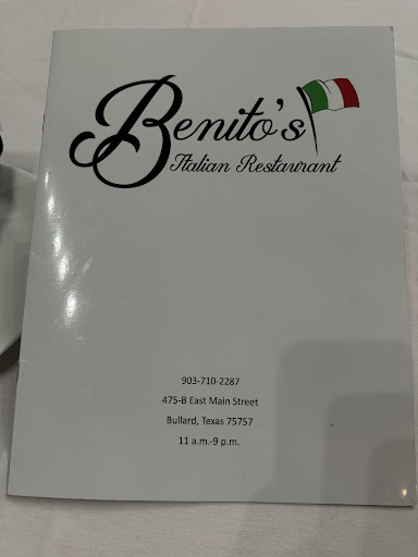I am very happy and pleased with this quaint spot off Hwy 69 and if I was hungry in Lufkin or Dallas, I’d wait to eat at Benito’s...