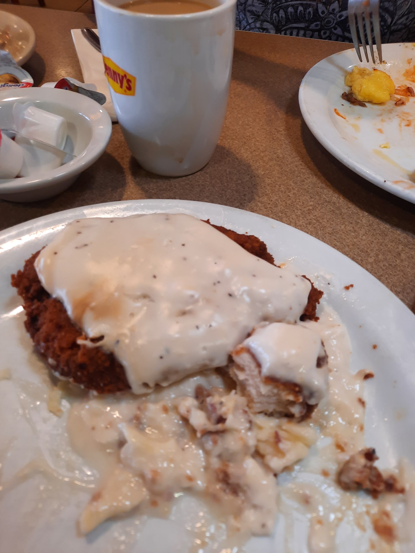 Upon being seated, we encountered further disappointments. My husband's request for sugar-free syrup was completely forgotten, necessitating him to approach one of the staff rolling silverware for assistance. The absence of attention to detail was frustrating.