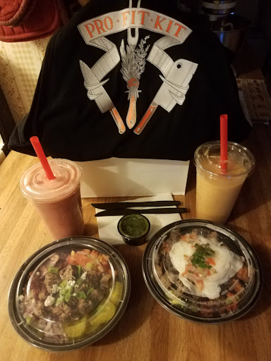 I ordered the Garden Fresh Bowl for dine in that morning and it was hot and delicious. While I was eating they prepared my to-go items: I got the El Grande Jesse bowl and everything in that just works well and was tasty. I got The Beast-aka FOX protein shake with add in Creatine, Glutamine and MCT oil. The shake was a delicious chocolate and peanut butter creation with coconut and flaxseed.