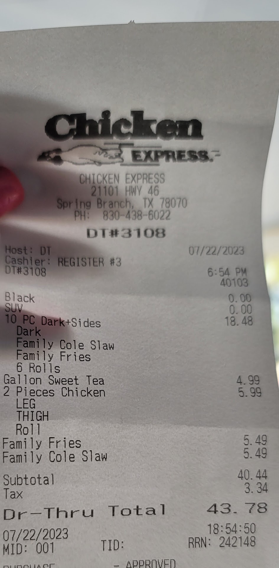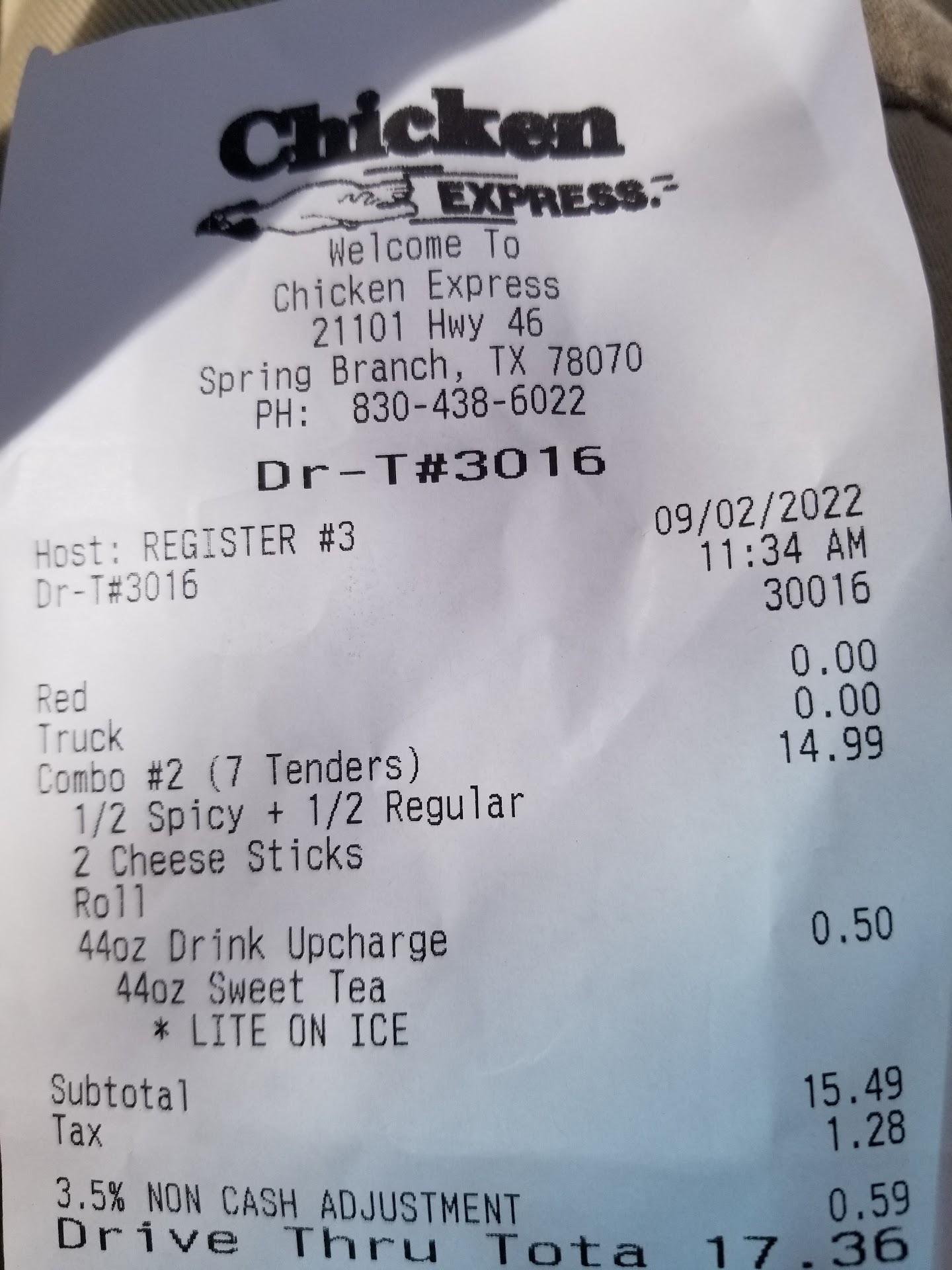 Read moreI went to Chicken Express today and went in the drive-through today, 10-21-2023. The guy on the drive-through taking orders... I asked the young lady who was passing the food out what his name was. His name is Aaron, and that man is rude and impatient. When a customer tells you that this is their first time, You Sir Do Not say to them, "Come on, what do want. " Repeatedly in a very impatient tone. I don't know who the Store manager is, but your other employees did fantastic. I would leave a better review, but Mr. Aaron gives your company a Bad representation because that attitude did not come as across a friendly and patient and tolerant, especially if someone might be autistic or slow. I sincerely hope that individual is not in a management position. I will be going to Popeyes for a while. I'm back again, folks. I went through today 1-6-23... first time in a couple of months. Who do I see but Arron. Lemme tell yall folks something this guy hates his life and his job and coworkers. Can't smile at customers, can't greet customers as they come through the door, pushy and impatient. With a resting b face that'd scare most...