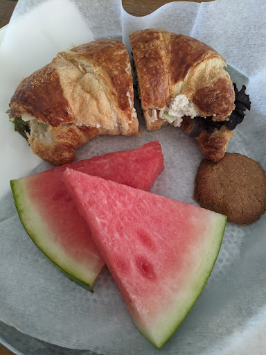 Super cute cafe with excellent chicken salad sandwich. Lunch comes with fruit or chips and a small cookie. Water and tea to drink. There are a few tables inside and more outside in the front and around the corner. Will...
