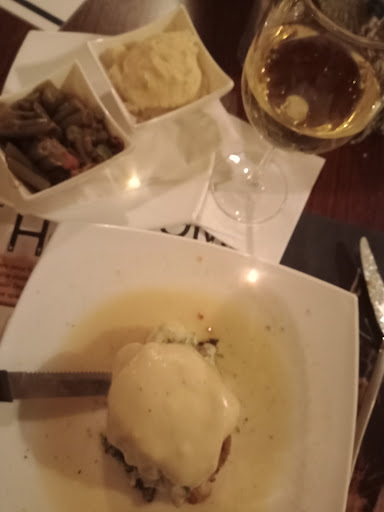 My chicken-which was stuffed with some kind of artichoke dip appetizer (on the menu) , topped w/swiss cheese, mushrooms, and a wine sauce was AMAZING!!!! SUPER DELICIOUS!!! I loved it. $20. and reasonably priced.