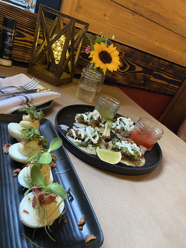 The flavor profile for the deviled eggs is amazing. The brisket is tender is the most balanced flavor profile out of all the items that weāve had unique and tasty the reason that is unique because of the texture of the egg yolk and white with the brisket and green onions with barbecue sauce Was literally out of this world.