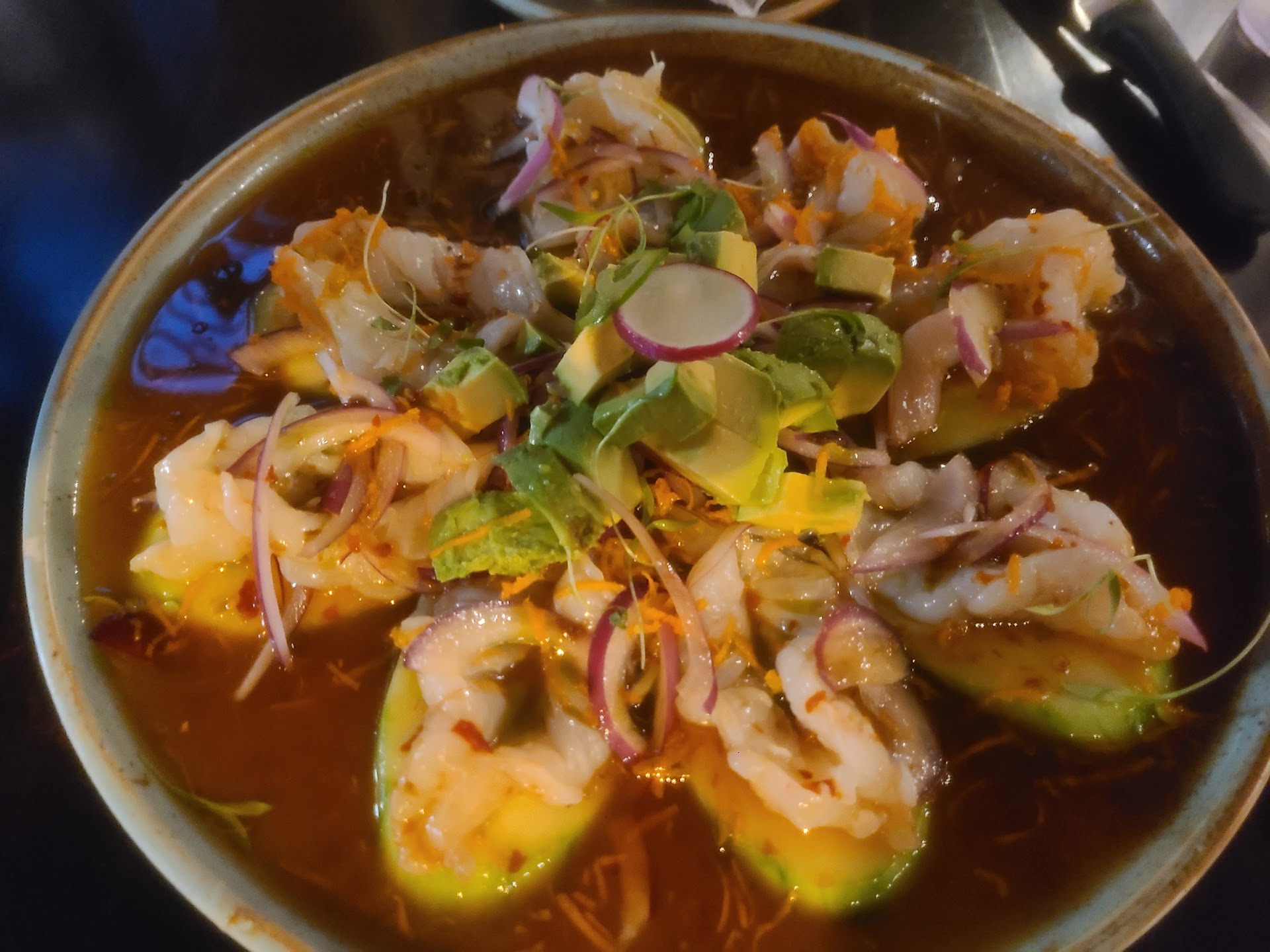 They don't start you off with chips/salsa, you can order chips, ours we got drizzled with mole, really flavorful. They have 4 different types of mole, we tried 2, so good (and I am not usually a mole fan). My favorite dish of the night, the green mole chicken with cilantro rice. It was slow cooked and delicious. The sea bass was amazing too, with the cauliflower mash, ok that may have been my favorite dish! Both ceviches we tried were fresh and delicious. The citrus bok choy salad was light and fresh. The Caesar was a heavier salad, presentation was really cool, they stack the leaves, so easy too cut and share, but the dressing was a little heavy on the anchovy for my taste. Both of the ceviche dishes we tried were light and the fish so fresh. We had to try the angel hair soup, it was really good! The nopales salad, unique and tasty! The cauliflower tacos were good, but I'd choose the chicken or fish next time, both were outstanding.