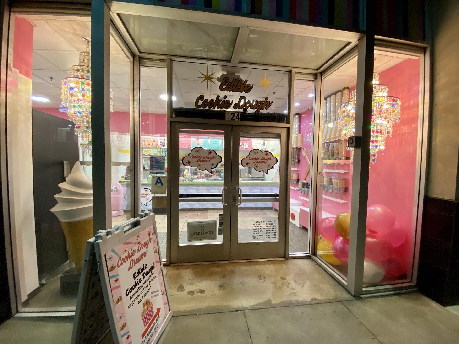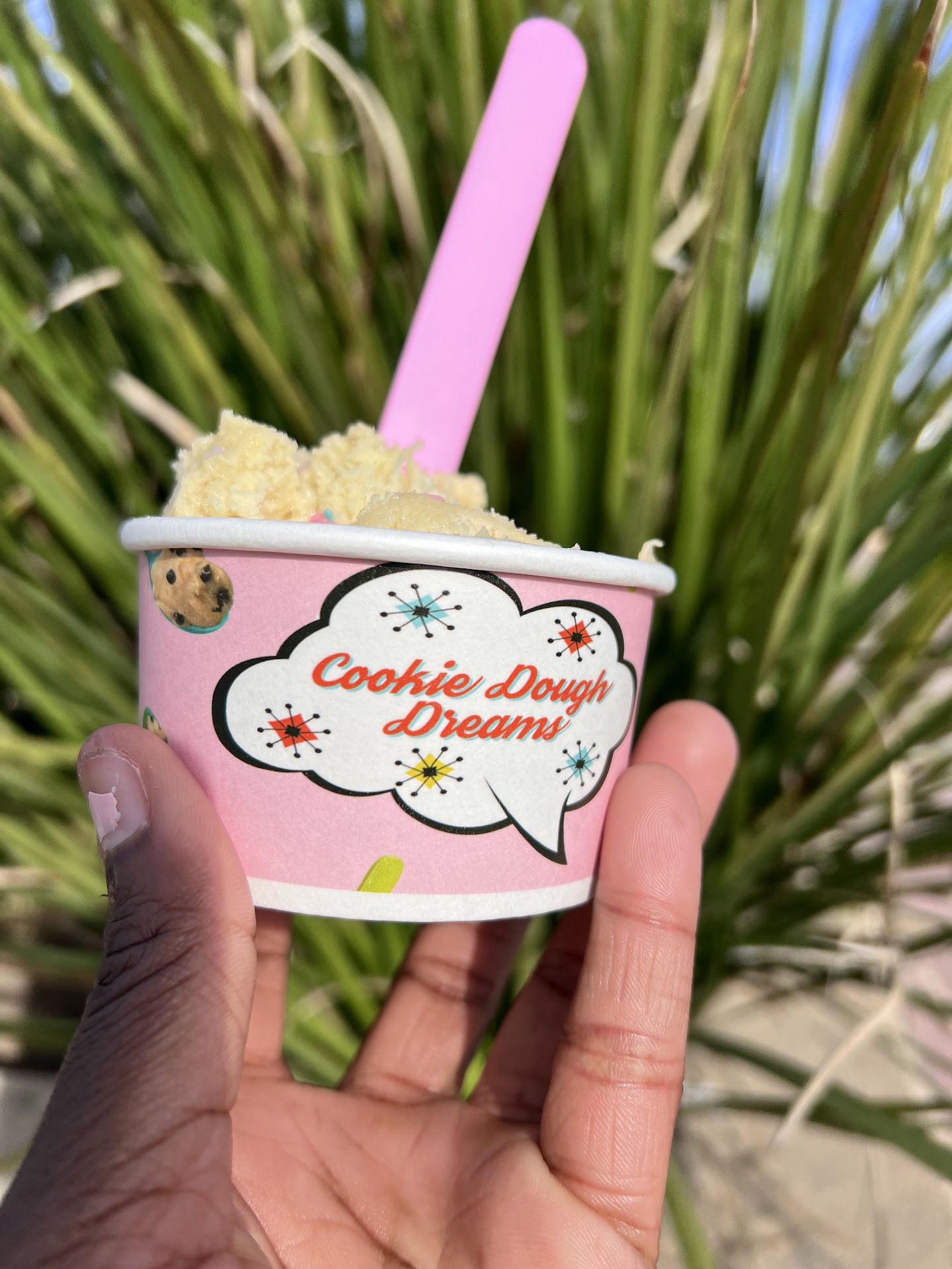 “IT MELTS IN YOUR MOUTH 👄” I was on my way to Panda Express on my lunch break at work when I actually took the time to slow down and look around ( love DTBB) it’s so cute and small wouldn’t mine my own place down there🥳.. anyways while looking around my eye caught the attention of this place. What caught my attention was the color pink and the name “Cookie Dough Dreams” cutest. After work I decided to check out this place when I walked in it was so cute and the theme is on point, it’s like (happy place, glitter/pink and bubbly🫧🧚🦄🌈) (check the photos)…. They had so many different variety of cookie dough flavors. I’m a course attracted to the sugar and, non chocolate options. QUICK SIDE NOTE (I only like chocolate chip cookies or chocolate candy bars and Nutella🙃)…I believe I got the “BIRTHDAY CAKE” dough or “something UNICORN” dqm😭.. it was so good is has different sprinkles in it and taste like sugar cookie. You do have many size options from kids-a full tub, I got a small and I could have gone with a kids honestly I like cookie dough but I don’t love cookie dough so a kids would have been more then enough for me personally. The lady working at the counter informed me you can keep it in the fridge for up to 7 days and you can bake them into cookies. They have so many dessert options like •Cookie dough• •Ice cream• •Cotton candy• •CD tacos• •Fresh Ice cream sandwich• And many more You can customize anything to your liking and have almost every cookie/candy topping and can also add ice cream and cotton candy to your CD. I will definitely be going back to try many other flavors and toppings. Lastly customer service was great the lady was so helpful and sweet and let me try samples and seem patient for the most part. Make sure to check out my photo attached to this review for reference.