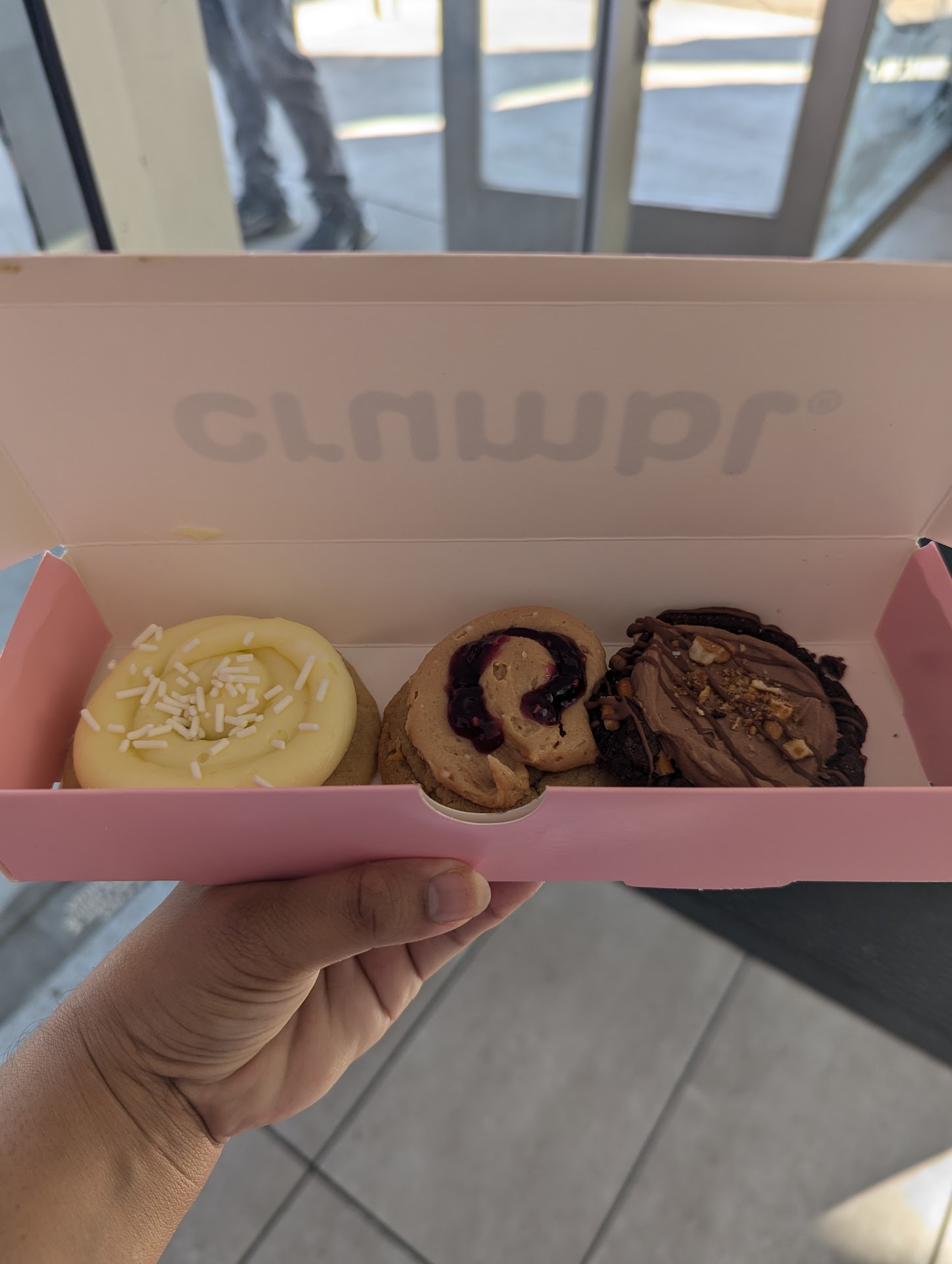 Read moreI'm on the fence about this location. I've been to this location twice for a pickup order and on both visits I have been the only customer there, but not one hello or hi when I walked in. No eye contact at all. I was invisible. So I just wait over against the wall by the pick up section. Both times I came in the morning. Is it just the morning crew that sucks? There are 4 or 5 employees there and no one can say hi? I get it customer service jobs are annoying. Been there done that but l would never make a customer feel unwelcomed just because I don't like my job. The only time that I was acknowledged was when my name was called for me to get my cookies. And I will add that the person who handed me my cookies was friendly. Now, the cookies are really good. So that would be the only pro for me. But are the cookies so good that it over shadows the poor customer service....