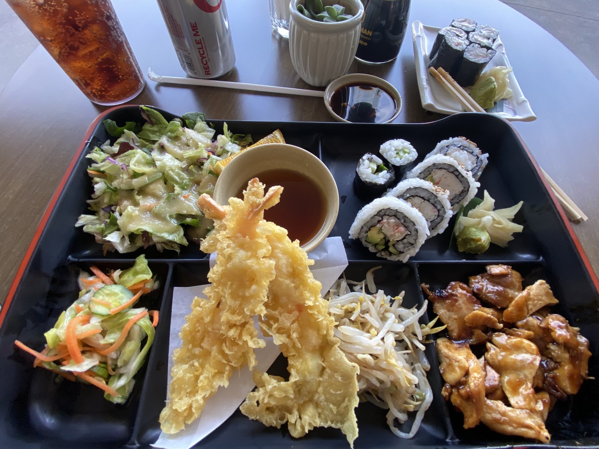Iāve passed by her several times and finally had a chance to give it a try and was not disappointed. The food was good and the price is more than reasonable. I had what is called the today special with salad, chicken teriyaki, 2 pieces cucumber roll, 4 pieces of California roll and I chose to have the shrimp tempura (there are options you can choose beside the shrimp tempura) and I wanted to try the sushi so I had a yellow tail roll. For a small place the service was quick and the people that work there are super friendly and helpful. I canāt say that anything really stood out but have no complaints and will give it a try again as Iād like to try some of the...