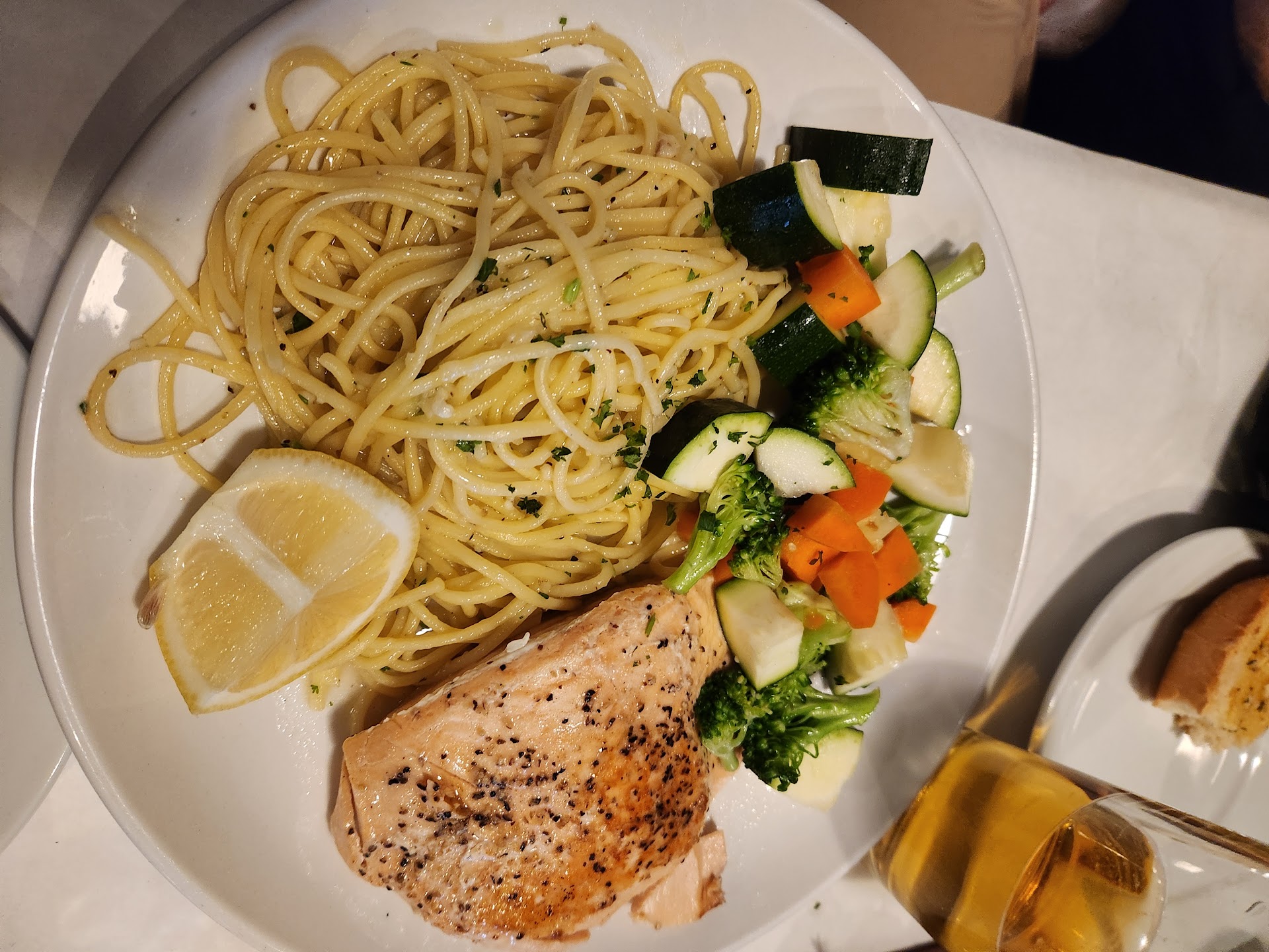 Read moreI went with my family to MA's and I was pleasantly surprised with the best scampi I've ever eaten. The shrimp was perfectly cooked so it was fresh and soft and full of great flavor with wine and butter and the pasta with it was perfect. One of our family got eggplant parmesan and another one got spaghetti and meatballs, and bruschetta chicken. Chicken was cooked beautifully soft, melts in your mouth. The young kids enjoyed their spaghetti and meatballs and even the garlic bread and knots. For dessert we tried three of them; one was an outstanding chocolate mousse with a little whipped cream on top which you could get with raspberries or not, and we got a Tiramisu and a delicious sweet pistachio cake with a little icing on top. Their garlic bread is amazing! You get lots of little pieces of garlic on it and it's soft bread with the crunchy crust I mean you can't get any better than that. They also gave us garlic knots. The only thing we could say wasn't 100% for us was that the broccoli and carrots vegetable mix was not cooked enough to be softer so we asked for them to make it softer and they did. A server will come around and ask if you want any more freshly grated Parmesan cheese on anything and they give you a lot if you want it . The portions are large. The service is incredible, our waiter was excellent and checked with us every few minutes to make sure everything was fine, they do everything with a smile. It's just impeccable.