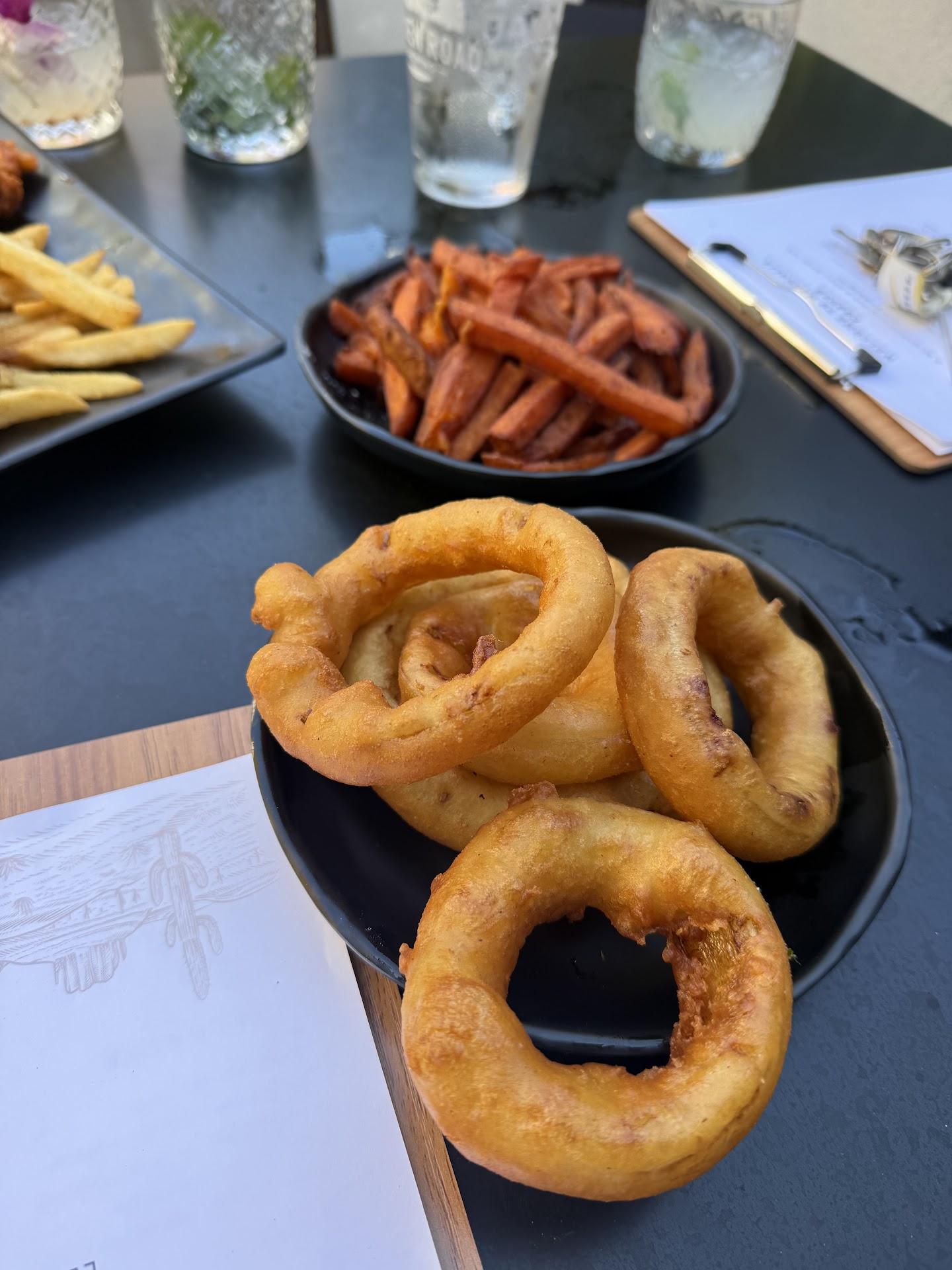 The onion rings, looked really promising! But, when I bit into them.. They had 0 flavor?? It was strange. I never had such a bland, watery onion ring. As if the batter had 0 seasoning, not even some salt outside of it...