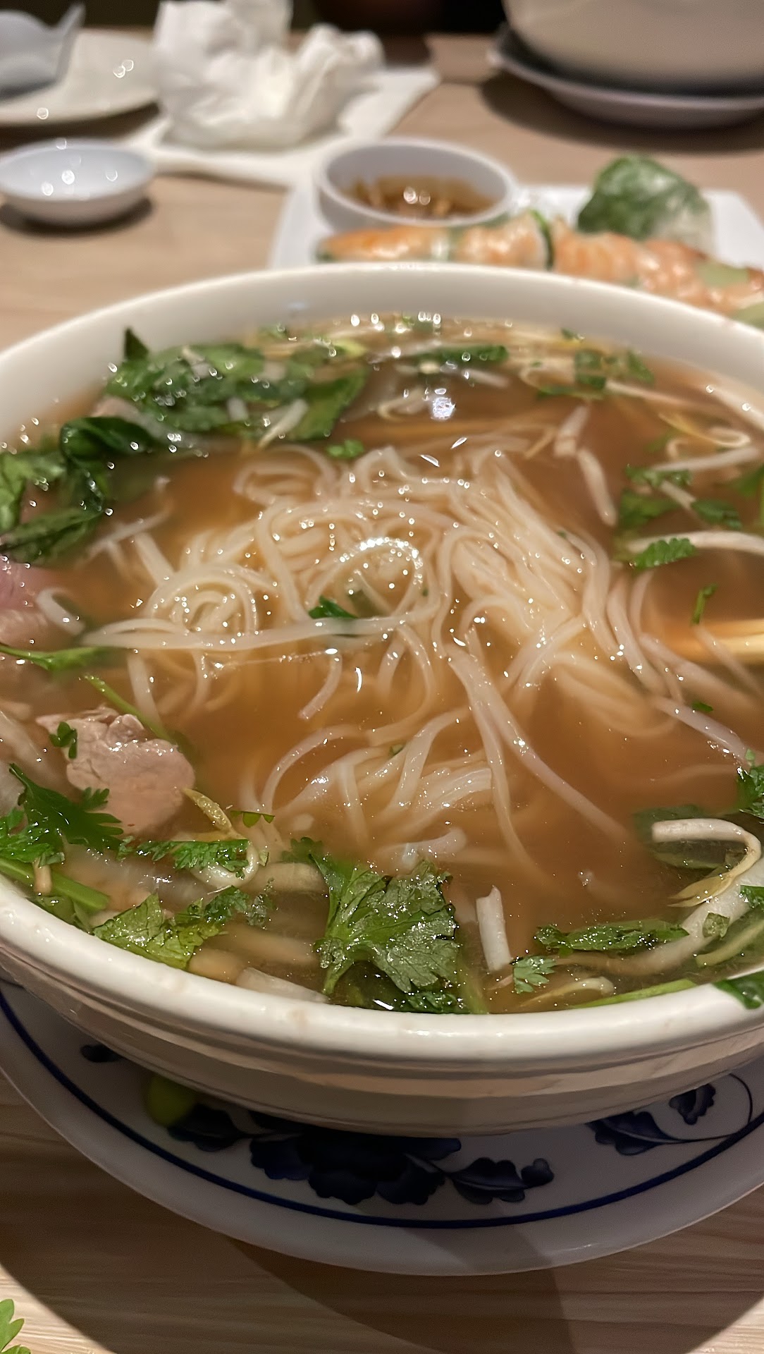 We had the fried egg rolls, spring rolls, the Traditional Combo Pho and the Shaken Beef. The fried egg rolls were okay and not melt in your mouth delicious as before. The spring rolls were not appetizing. The sliver of meat in the rolls were dry as well as the shrimp, too. Definitely not fresh because it didn't taste or feel fresh. On some parts of the clear wrapper of the spring rolls, there were portions of the roll that were a little tough as if they were sitting under a heat lamp or in the "window" for a bit or the wrapper was a little too dry when rolling it causing the wrapper to be chewy. The lettuce on the inside of the rolls didn't look so great either.