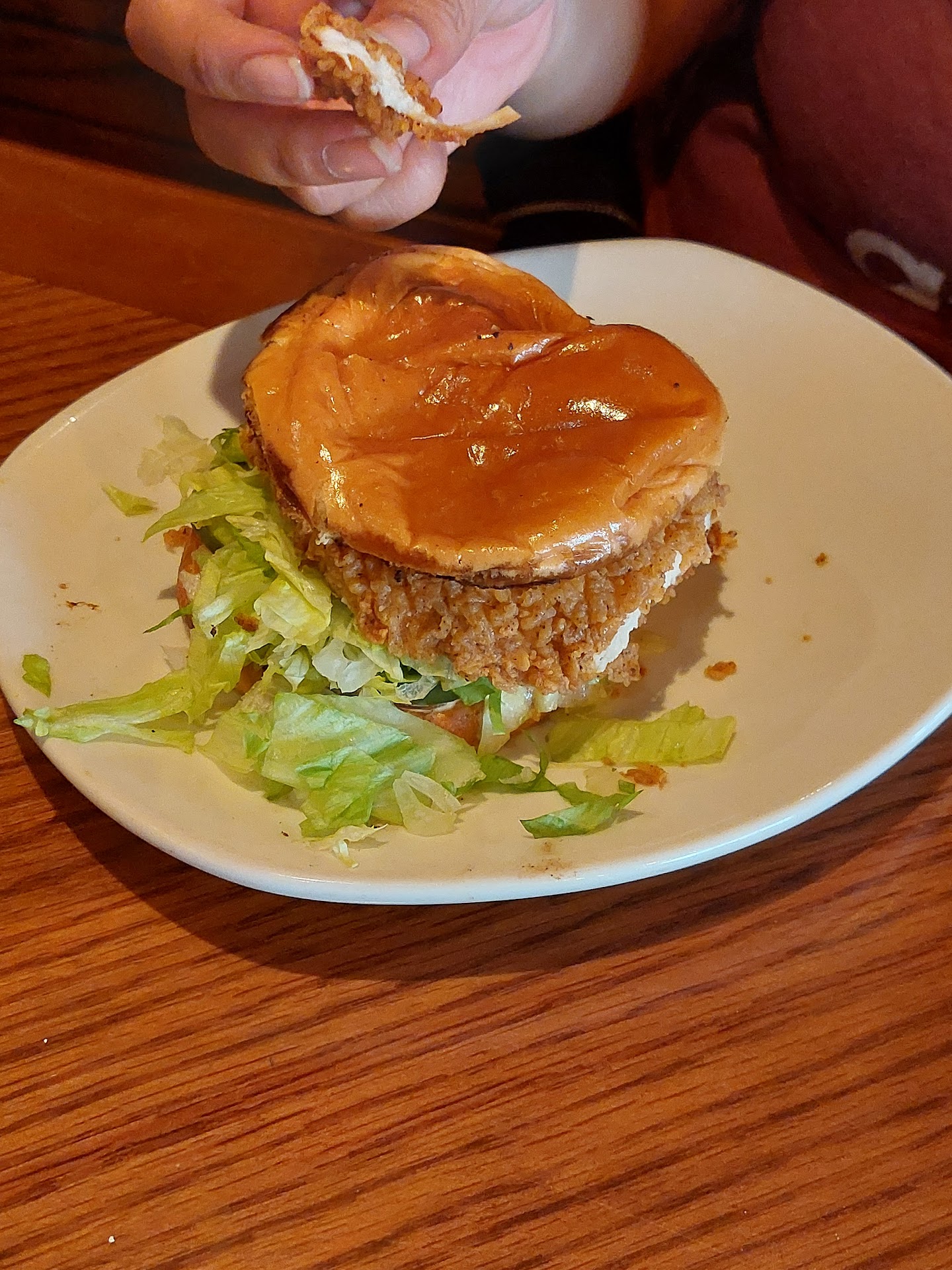 Read moreHadn't been to an Outback steakhouse in years, this one didn't disappoint, I ordered the NEW Blooming Fried Spicy Chicken burger with a side of fries. First impression upon arrival of meal was "WOW, they are extremely generous with their fries!" The burger was a tad bit lost amongst the huge portion of fries, which, by the way, I didn't mind one bit as I really enjoy fries. These fries were absolutely perfect. Nice size, not too thin, not too thick, and they were salted perfectly. The burger was on the smaller side, and the taste was just underwhelming. It was OK, but nothing that left an impression, I was expecting more spice, at it was a SPICY burger. It was fried perfectly, great crunch just lacked flavor. Service was excellent! ANDREA tended our table, #32, marvelously. She was sweet, efficient and overall VERY pleasant. Thanks for the warm bread, it was PERFECTION! Andrea was FANTASTIC! THANK YOU! The location was lively, music was catchy and there was definitely a family atmosphere at the restaurant, lots of kids, their joy was infectious! The place was, surprisingly, bit too crowded for a Saturday at roughly 5ish. Will definitely give this place another visit and try other items. Oh, almost 4GOT....BLOOMING ONION!!! Presentation is great, HUGE, seasoning is on point, did I mention HUGE, we brought half home to enjoy at a later time. I think this is a must try. Definitely good to share with a decent size party, there were 3 of us and we didn't make a dent on that behemoth. Very,...