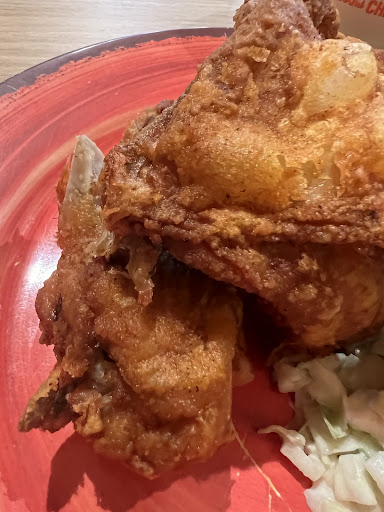 Read moreChicken just came out and was surprisingly juicy and super tasty!đLoved the seasonings, and crunch. The sauce (think Chick-fil-A) cheapened the flavor, just eat the chicken alone, itâs that good. The yucca fries were GARBAGE thoughđ Pretty lame since when Whole Foods had them in their hot food section and theyâd sit there for hours - those were still infinitely better than these chalky, bad-tasting deep fried powdery sticks. Ew. Place was busy, but a 14 min wait for breast meat is simply poor management. They kindly gave me an extra drumstick for the wait - senior staff...