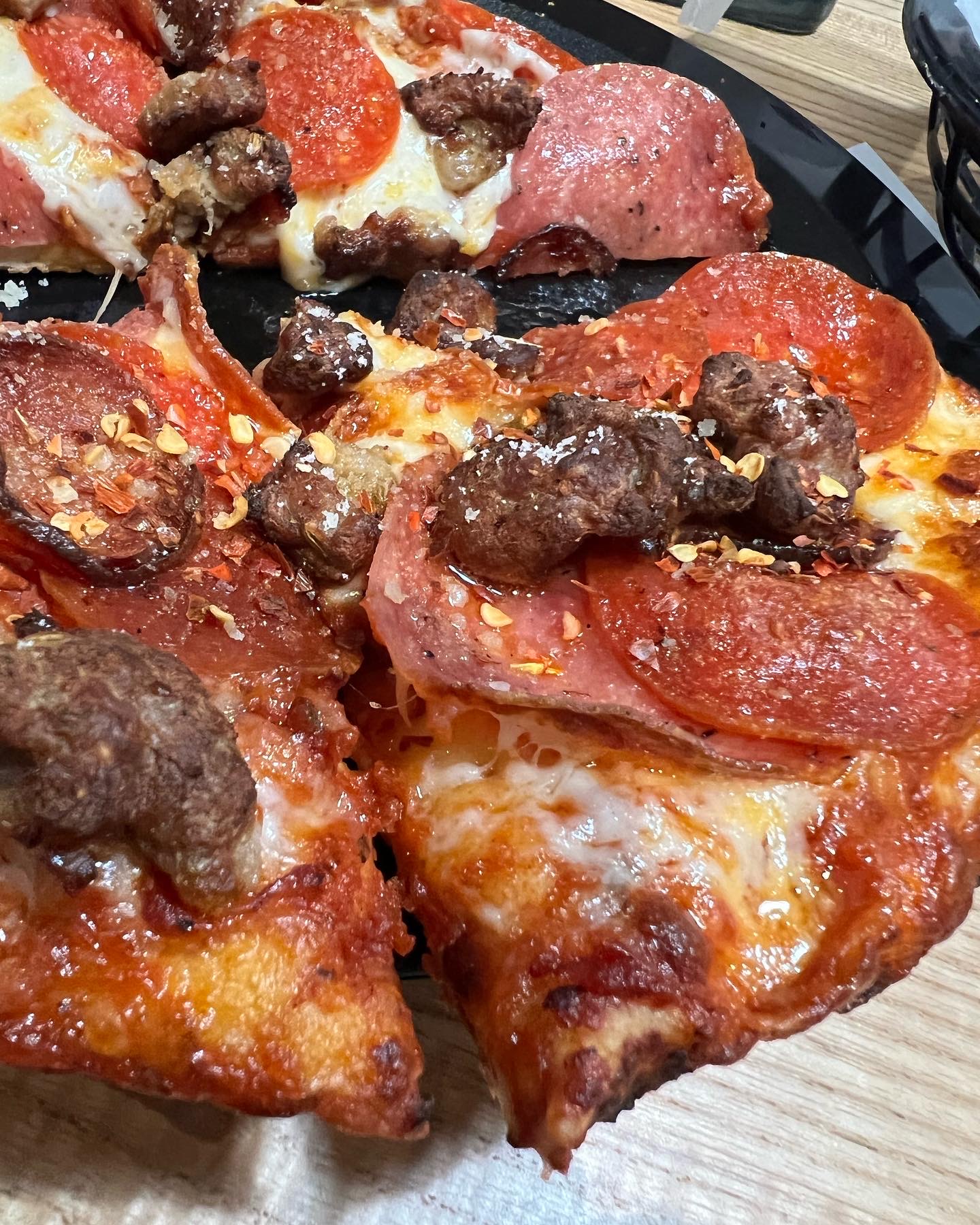 Read moreMy first ever one star review. Pizza arrived with both orders wrong, pizza had no source and wings had bones. We call expecting a quick fix and apology, instead they can't find the receipt (we give them all information including order number) and the guy says they can resend it but it will take 2 hours. No refund, extra food, nothing. Then my wife says can you speed it up since we were in front of the others and the guy say, "Well I don't know your order way wrong." So not only can he find it, he suggests we are lying! So we text this guy the receipt and online order. Only then does he offer to speed it up to only 45 minutes, still no extra food or refund. OK guy was terrible and had a tone, but at least we got good food.