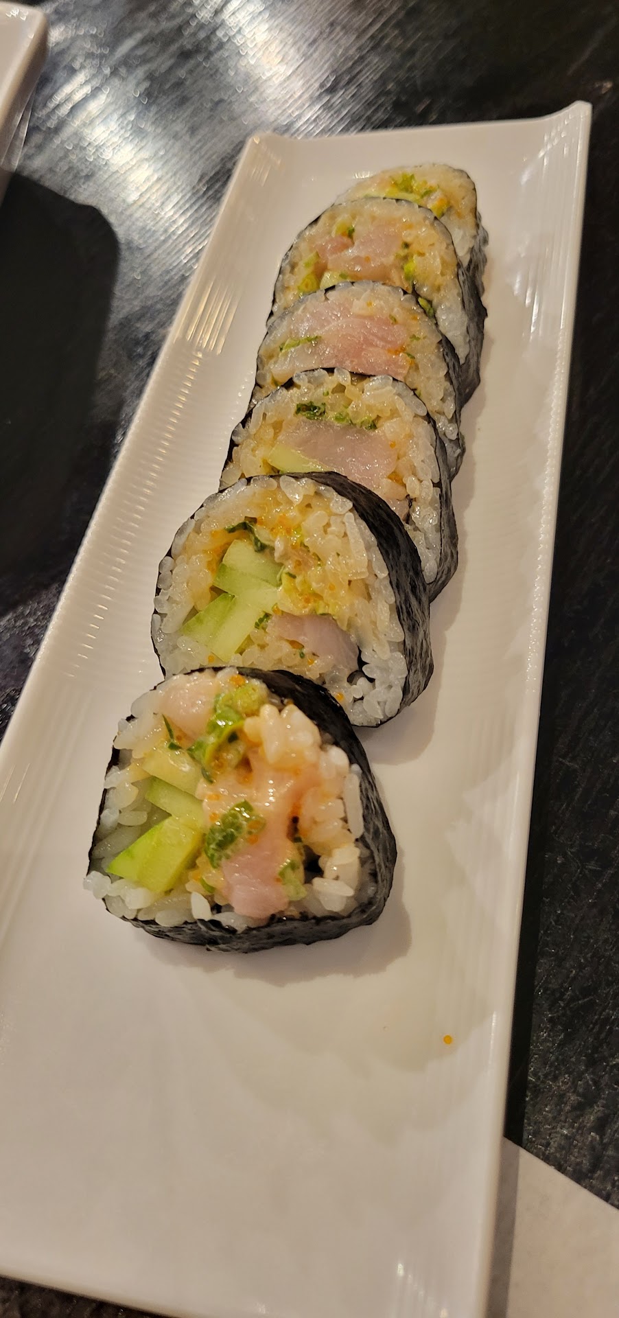 Read moreThe atmosphere is nice and your classic Japanese restaurant with booths and table and nice music plaing in the background. They brought water right away and menus. The menus were interesting and you can order with a dry marker and writing on the menu. To simplify things we wrote only on one menu and reviewed it with the nice waitress. I ordered Sushi ala cart and my friend ordered some roles. We got edamame, miso soup and cucumber salad to start which were all excellent and up to my Japanese standards. The cucumber salad had a very nice dressing which was maybe miso based. Next the sushi arrived and I took my first bite of the Himachi which was excellent. Fish was perfectly cut and a soft melt in your mouth taste with the perfect temperature rice, tasty rice vinigar and wonderful rice combo to make the perfect mouth watering sushi. All the other sushi 🍣 including the Uni was perfect. Next the rolls arrive which were delicious. The lobster roll tasted excellent (I'm not a roll person) and was best when you ate one complete piece in your mouth at a time although rather large and again you can taste the wonder flavor of the excellent rice. The rice here is delicious. Next thing we knew everything was done and we forgot to take pictures...I'm saving up for the Omakase and...