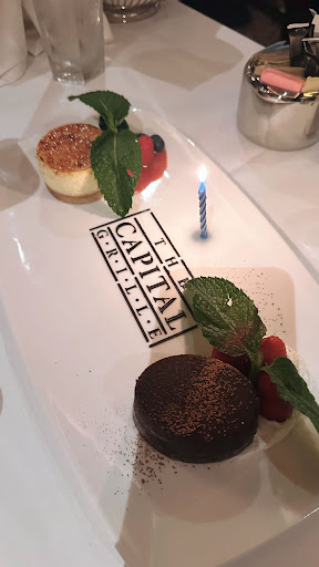 Read moreOur first time dining at The Capital Grille last night, and the food and service were incredible! Our server, Adrianna, was perfect for our first visit. She was friendly, knowledgeable, and she did an excellent job making sure our courses were spread out and not all brought out rushed. She was a very happy, sweet waitress. She made our experience memorable. And the food was AMAZING! We ordered the bacon appetizer, which was phenomenal! I ordered the 10oz filet medium with a kona crust and shallot butter; oh my, it was the best steak I have ever had! Way better than Mastros/Mortons/Ruth Chris. My husband ordered the sliced filet with onions and mushrooms. For our sides, we ordered the creamed corn with bacon and the au gratin potatoes. Amazing as well! The bread basket served was good; I loved the bread with the onion topping. We also ordered a lemonade, which was really good. For dessert, they brought us a complimentary espresso flourless cake and their cheesecake. Both delicious! We ordered their famous coconut cream pie, and it was so good! It was a different spin on a coconut pie, but whatever they did to it made it amazing! I can't believe we had never dined here before. We are definitely looking forward to coming...