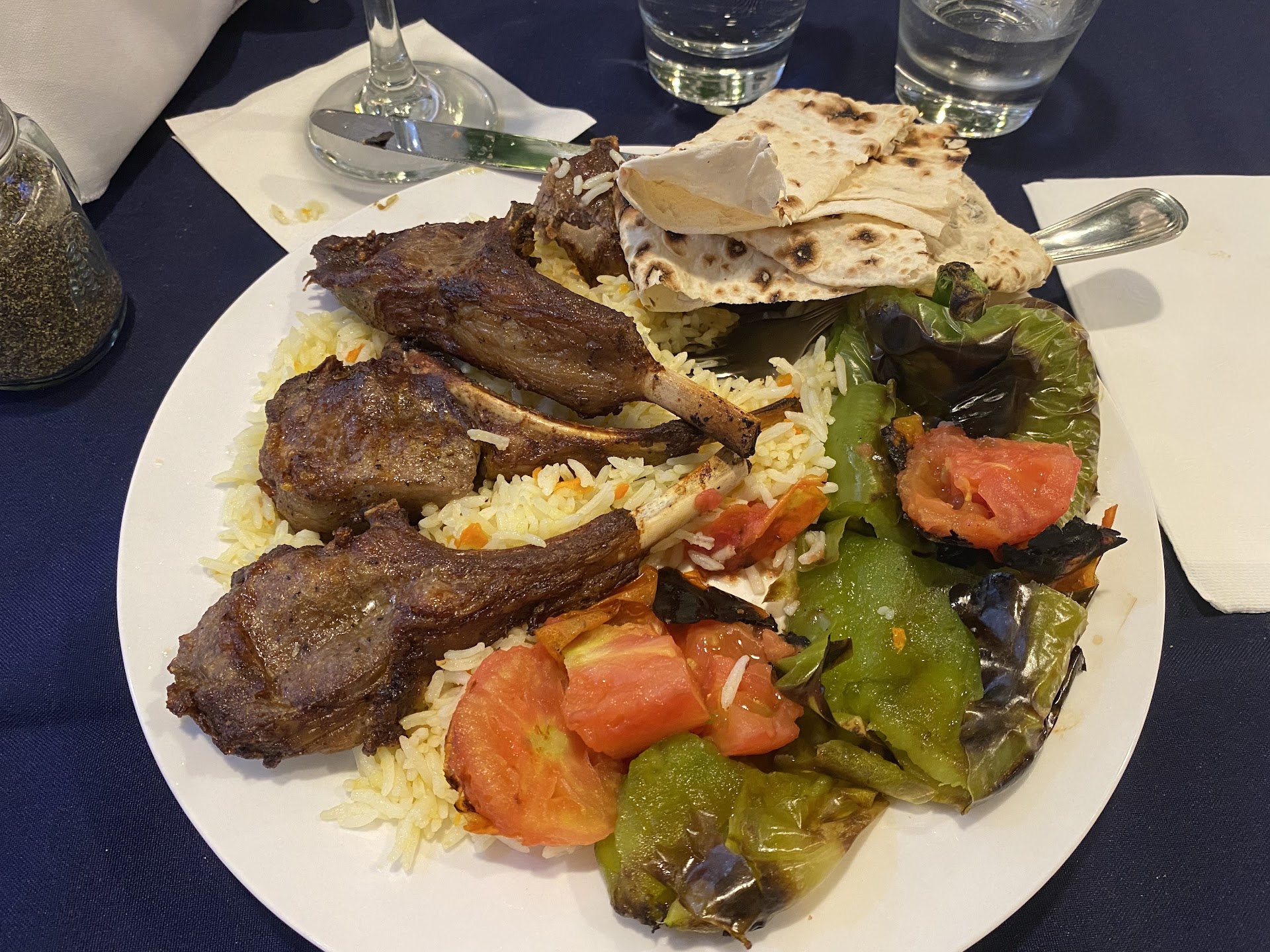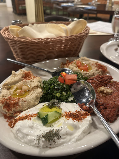Cons: the food came out too quick and the service was too slow. We went on Valentine’s Day and it seemed they were understaffed or we were working with an inexperienced waiter because we had to make eye contact EVERY SINGLE TIME to get our waiters attention - in total we were there for one hour and 45 minutes, not ideal. While the service was slow, the food came out too quick, let me explain. We ordered the pre-fixed meal and so first they brought out the pita and cold appetizers. Then a few minutes later, they brought out more food and then nearly 3-5 minutes later when we hadn’t finished anything, they brought out the heated food aka the main dishes with Chicken Kabob, Chicken Skewers, rice and veggies. However we didn’t want the food to get cold and our table had no space for all that and drinks. So after 10-12 minutes of trying to get our waiters attention, we ere finally able to get them to take the warm food back in the kitchen. Another con is the rice was plain and we told them we didn’t eat beef and they still gave us a beef appetizer dish which then took another 10-12 minutes to remind them we are not red meat eaters to get that taken away and replaced with more falafel balls, which we’re okay but certainly can count better falafel balls I’ve had in my life time.
