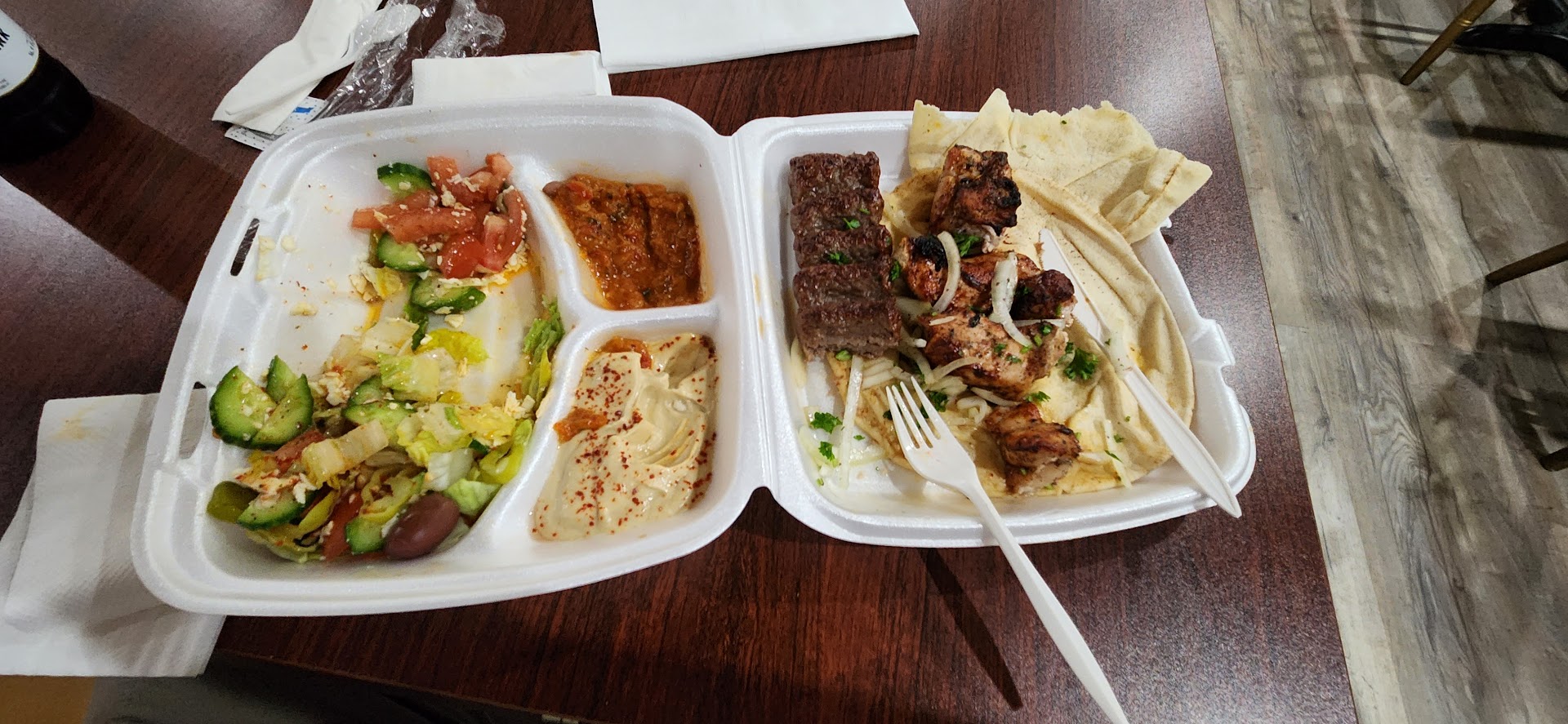 Read moreIt's got the air of a hole in the wall restaurant from the outside, but do not judge them by the exterior. it really does have the best Mediterranean food in the area. They have a vegetarian plate which is really just the sides grouped together as a single plate, so my vegetarian friends weren't overly impressed, but I love the lule, the kabobs, and the sides are super flavorful even if not filling by themselves. The salmon also got high marks from my friend. The prices are reasonable too.