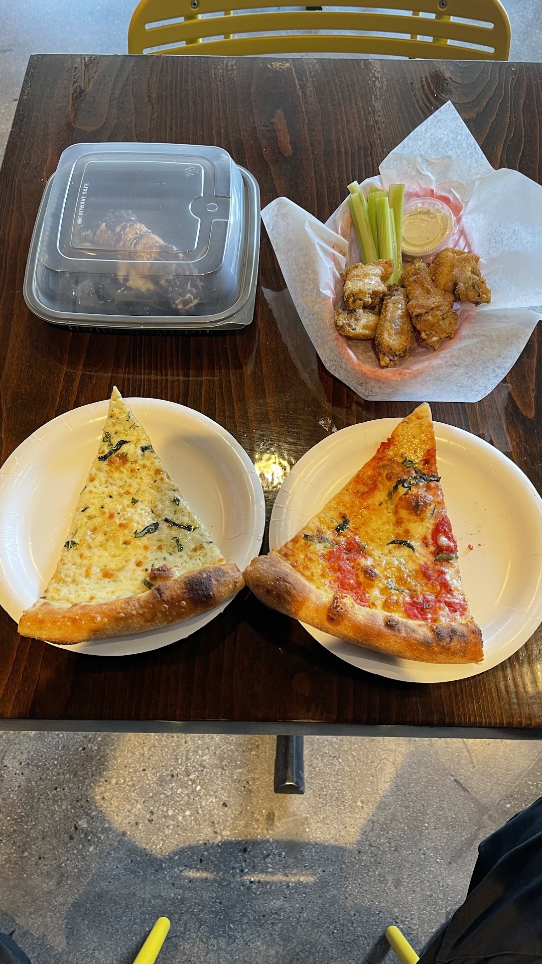 The pizza was really good, I got a slice of the Walter White, I think the machine (thick and regular crust) also got the lemon pepper wings and a cannoli.