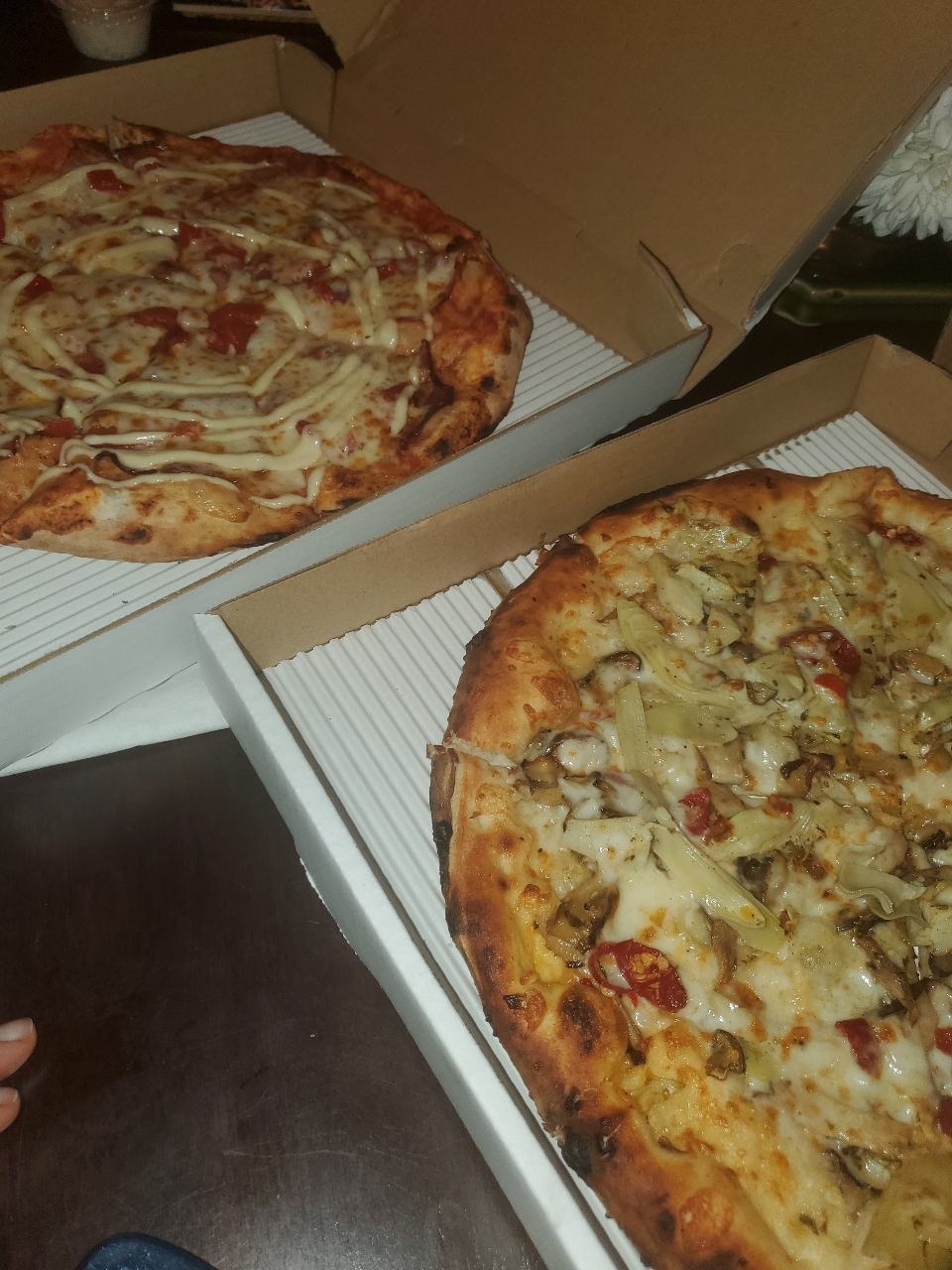Read moreWe had grandson visiting ordered three pies to go. Our first time. No complaint with pie size. They were ready when they said they would be, BUT BUT their taste and preparation was horrible. The crust was tough and burned. The one photo shows that their slice cutting tool did not even make it all the way through the tough crust. We had to saw slices apart. The burned flavor permeated through everything. It's pretty sad pizza when they are not even worth saving for breakfast. We're sending more details & photos to managment. We always support local businesses and hope this experience...