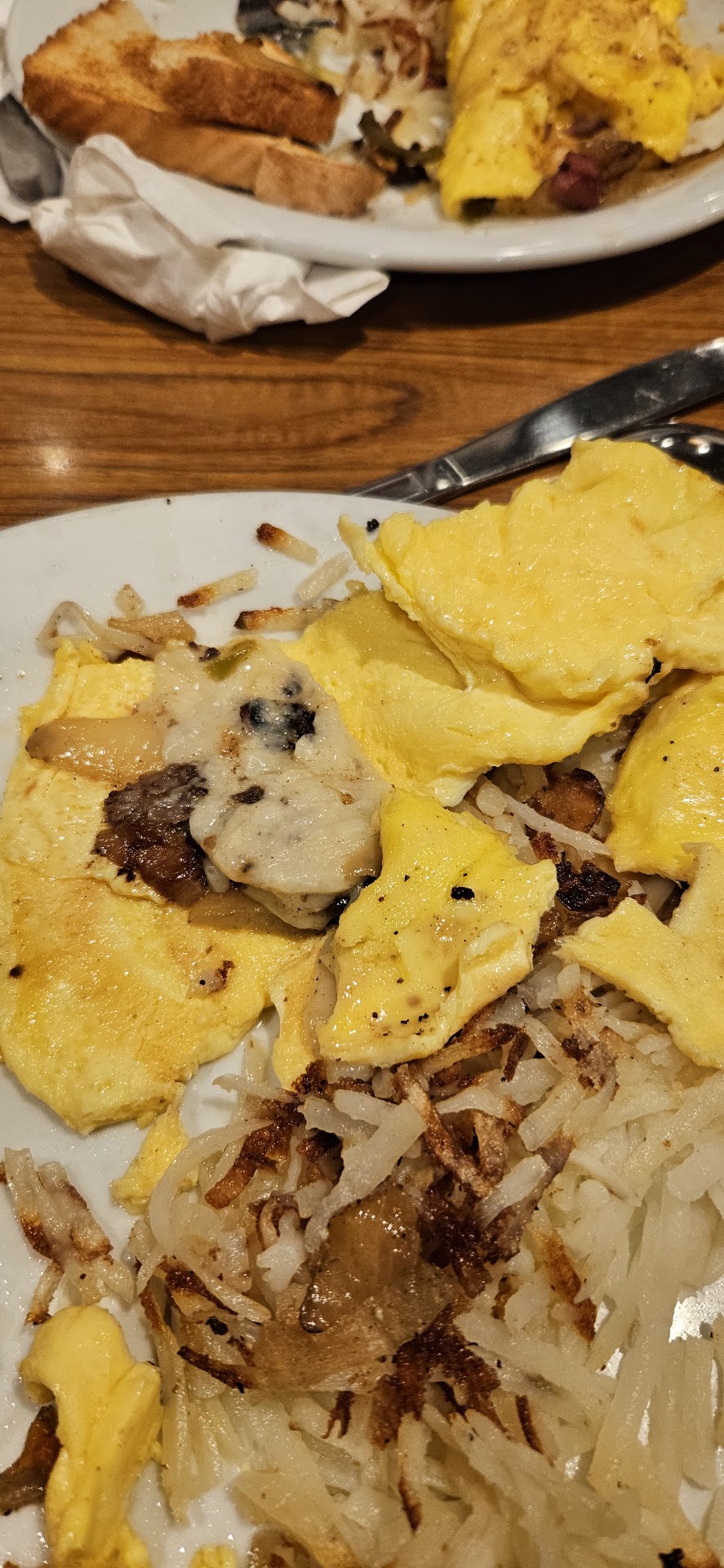 I'm not even in the mood to tell the story at this point, thats how mad and disgusted I am. So ill just bullet point the things: ▪︎ old, dirty oil that left the worst taste in your mouth, burning it out with hotter than hot chocolate, didn't work.. had the boneless wings, which were replaced by regular chicken strips, only to realize too late what the problem with the first round of chicken really was ▪︎ moldy English muffin ▪︎asked for extra veggies on a skillet, was given AND CHARGED FOR, a random side of soggy veggies and some weird cold sauce I had no idea what it went to. (By the way, none of the "side of veggies" were any of the ones that come on the actual skillet.. they were weird squashes etc) ▪︎everything ordered was burnt and I mean BURNT!! Like a ginger on a hot summer day.. except for the club sandwich, surprisingly. Not that is made up for the fact that the turkey and ham on the sandwich were visibly rotten and had that nice yellow tinge around the edge of the sliced meats.. 🤢🤮 ▪︎had to wait for an hour to pay the bill.. was given a bill for over $60... WHAT?!?! UM YEAH NO... I asked to have the inedible, half order (not ordered like that) of chicken removed, and the weird sauce and veggies that nobody ordered, and just had our server walk away and start taking the order of people who had walked in for take out.. WHAT!?!? After waiting a bit, I went up and asked what I was waiting for, or if there was a manager I needed to speak with in order to have the couple of things fixed on the bill. She then went and talked to the "cook" (don't feel comfortable using that term, but whatever) and came back and continued taking the to-go orders.. again I say, WHAT?!?!?! It's 245 in the morning now, I've got a small child with me that I'd like to get home to bed (she was hungry after I picked her up) Ummm.... WHATS GOING ON?!? DO YOU WANT MY MONEY OR.... so I'm asked "you pay now?" Omfg 🤦🏼♀️ "yup.. same thing I've been trying to do" and then told my total, which hasn't changed from the original issue.. what in the serious heck... AGAIN, I state my issue, she disappears and returns with no acknowledgment, finally I'm mad, she says "no its good. You no pay" I tried insisting I just needed the one thing removed, and I'd like to pay my bill...