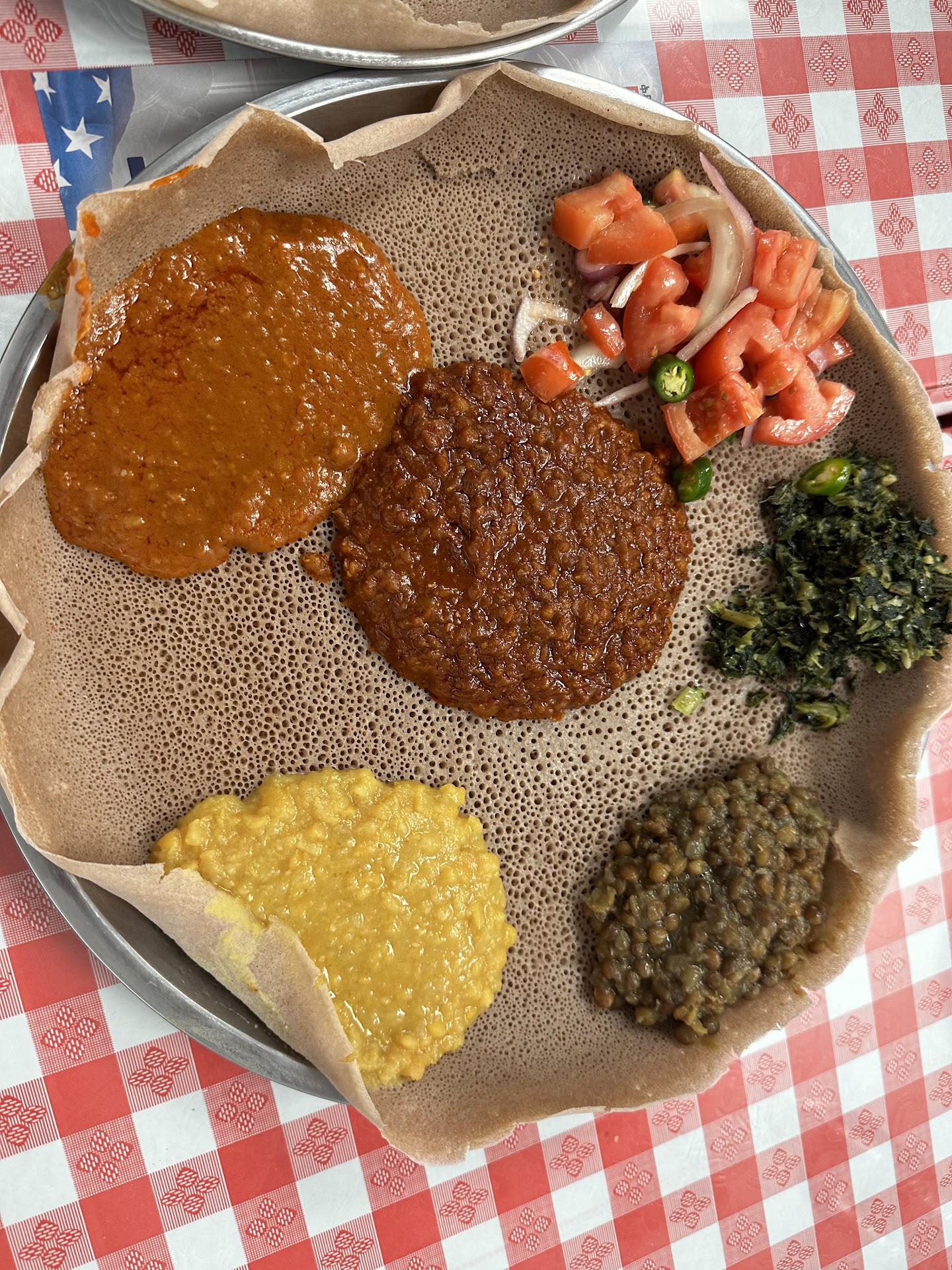I got delivery and was so grateful Doordash can get me Ethiopian food in Federal Way! Although I prefer in person, sometimes I do not want to drive. The food was very good. I always get the Veggie Combo at Ethiopian places because I am a vegetarian. This one did not disappoint, and they did a great job packaging for to-go (like putting the salad separately, unlike a lot of other Ethiopian restaurants that pile it all in with the hot food). The Veggie combo came with very tasty injera, yellow lentils, green lentils, two kinds of red lentils, greens, and the salad. It would be awesome if the included some shiro wet, green beans, okra, beets and cabbage/potatoes (or some variation of these). Us vegetarians love options! I will definitely order from here again and will take pics next time. I recommend this place for a solid veggie combo, nice food presentation, and well put...
