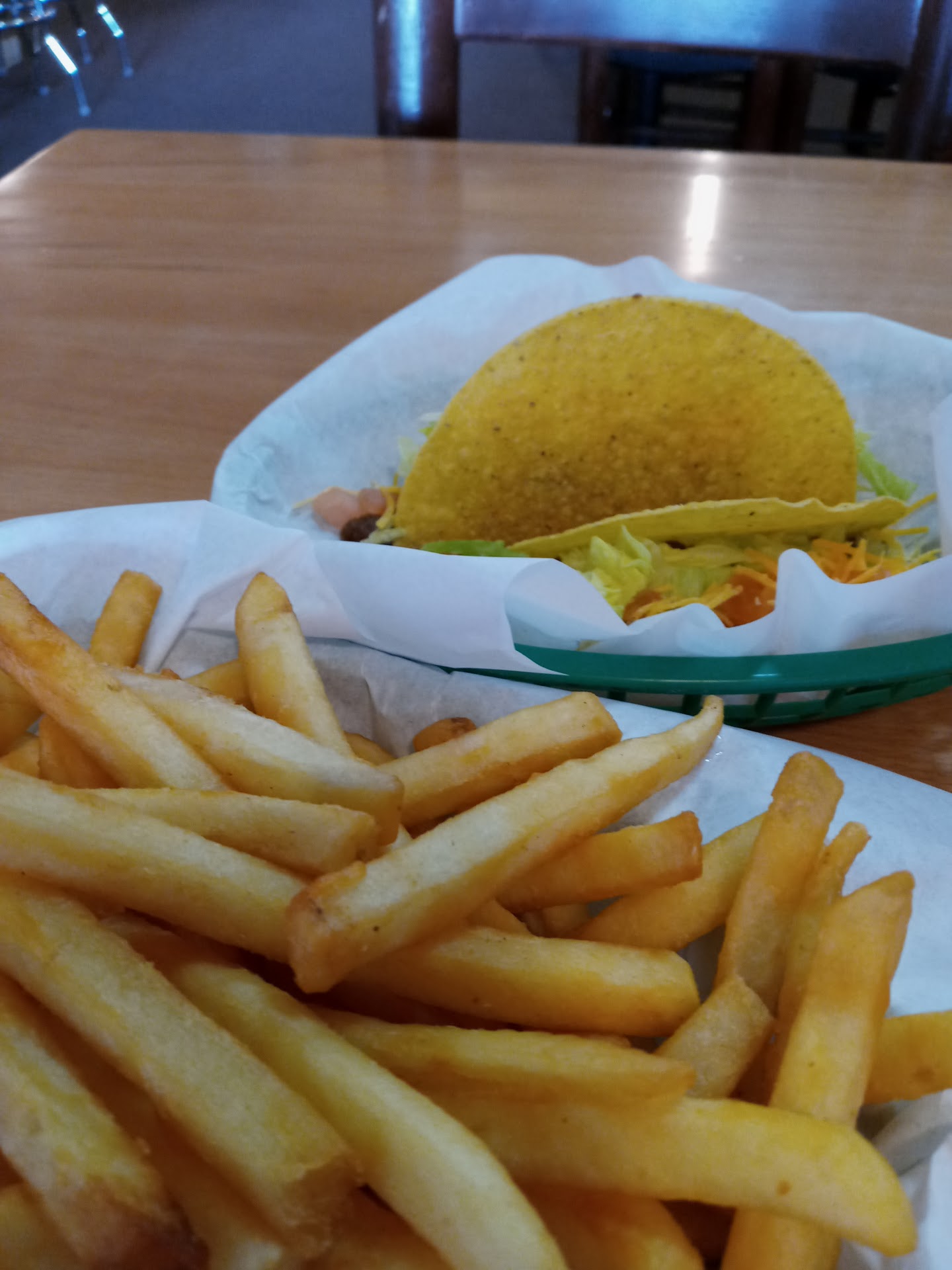 I had walked by this local Bar and Grill, many times, but never was brave enough to venture in. Perhaps always a little intimated to trying a new place, especially bars. I just like setting and chilling out perhaps having a nice beer on tap, and some good food. Well I found Elmer's Bar & Grill a nice place to do just that. Went in between 12-3pm on a Thur afternoon. Discovered they were serving tacos đź for only a $1.00 a taco. They were beef tacos in the hard shell. I ordered 2, and small basket of fries. (All of it was great!) The tacos really hit the spot. Since I was considering going to the Taco Time just two more blocks down the street. The Tacos đź at Elmer's far outweighed any thing I would have received at Taco Time. And far far better price on top đ” of that. Did not order beer, just a soda. But found the atmosphere or decor, to be like "back home Iowa or Midwest vibe" with locals "shooting the breeze" (talking or conversation). It was relaxing and good food to top it off, on this visit. Also liked the way they had it decorated for...