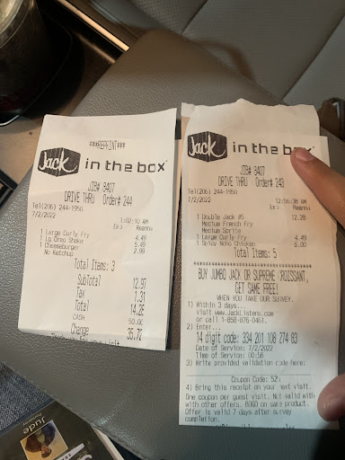This is a new post 6/3/24--Tried the Smashed Jack @ $11 tax included-I can't recommend it. 1 patty, 3 pickles, scattered onions and a skimpy piece of cheese. I took a picture and showed it around, WT HEY JACK, who's in charge of quality control, it's been trying last couple of months, on a previous visit the cashier had to show me on her iPhone what she was saying, SHE DIDN'T SPEAK ENGLISH again WT HEY JACK. IF corporate calls me I hope they leave a message as I've not received calls yet. -----Tried the delivery on app, took my money from bank, couldn't find order in app, gave me a delivery time, didn't appear, called store, rang and rang, phone stopped ringing, called back, busy signal, filed complaint on website twice, No call back or correspondence, WHAT'S UP JACK YOUR NOT LISTENING đŹ Day 3 and not a single bit of correspondence, no email, no phone call from Management, District Management or corporate, JACK ARE YOU LISTENING ? Recent visits show their improvements in hiring good employees is working. They listen đ. Recent visit was horrible. What no fryer, no French fries, cashier doesn't speak English shows me her phone using Google translate to text me and won't compensate for the combo I ordered THAT DIDN'T HAVE FRIES, I WAS CHARGED THE SAME AMOUNT, shook her head, walked away, who hired a cashier that doesn't speak English and uses her phone to communicate, Arggggg ! One employee so far I can appreciate, Maria. I won't stop unless she's working. THIS RATING IS FOR...