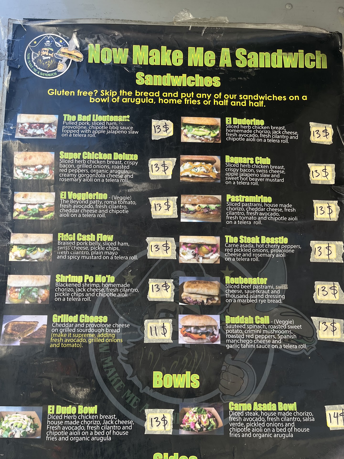 Let's get into the order. We got a bad lieutenant sandwich and a hame'r of the gods. For sides, we got the chipotle mac salad and the jalapeƱo poppers.