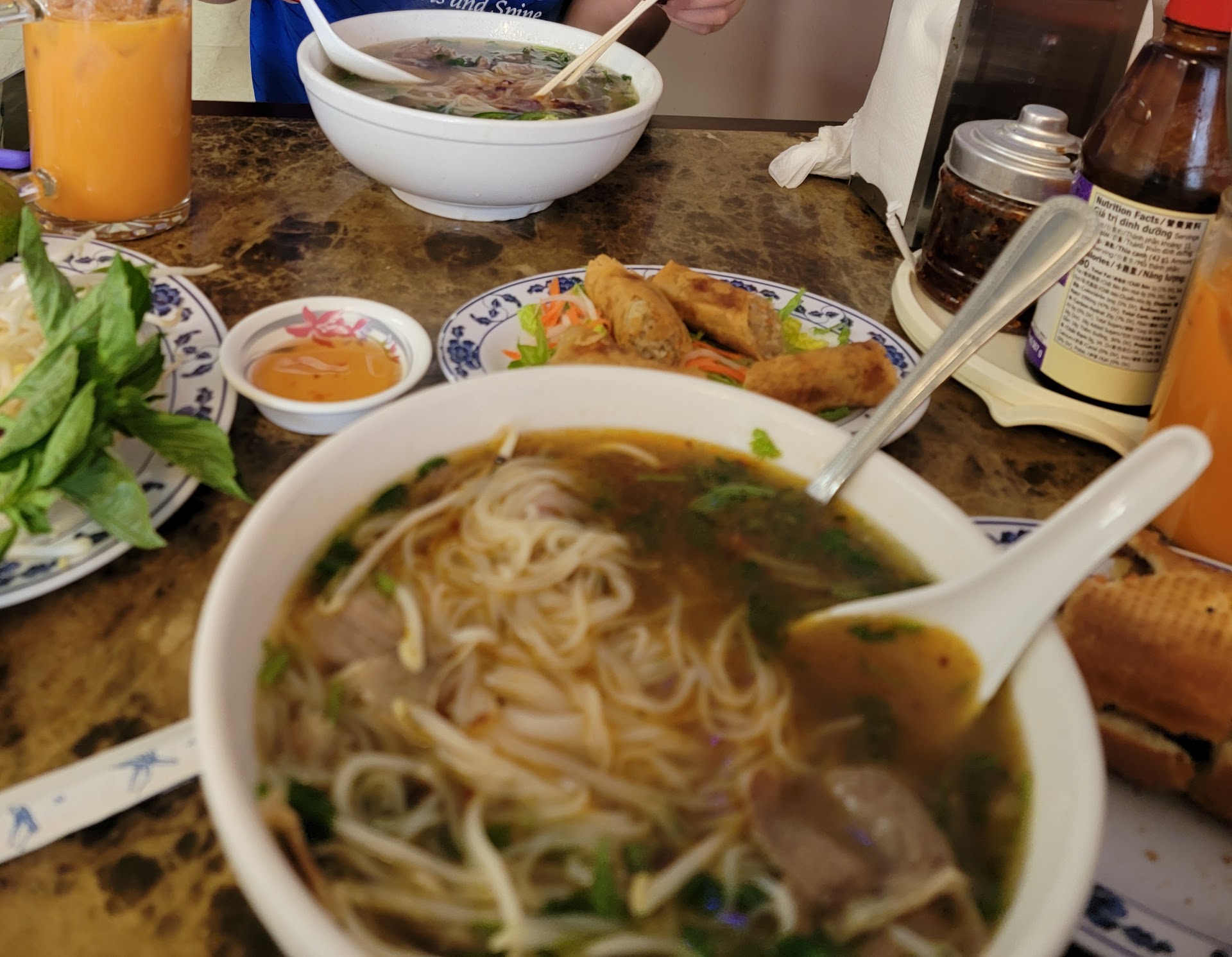 Visiting from Eugene, OR. My daughter just finished a full, hard fought club soccer game against OL Reign. I was hungry for lunch, so I was looking for a lunch spot near the field, and this Pho spot caught my eye on Google maps. There were some positive reviews, but what caught my eye were the negative reviews. Haters gonna hate. Would they deter me? No. So I wondered the side streets while gauging my daughter's interest in some warm broth with noodles and protein. She was open to it, and as I ended up on the main street, I saw a ghetto looking strip mall with just that Pho spot that caught my eye. Understanding from the reviews that it was run by a couple and seeing the setting, I knew I'd be in for a treat. When I walked in the door, we were greeted authentically and pleasantly. We were sat promptly upon answering that we intended to eat there. My order was taken quickly, and as soon as we were ready. Did I dare ask to use the restroom that the sign on the door boldly read was not for public use and appeared locked with a padlock? I asked and was assured it was not locked. It wasn't, and it was very clean. By the time I got out and my daughter and I commented to each other how nice they were, our food started coming out. The Banh mi was crisp, warm, and tasty. The fried spring roll was delicious. The pho was huge and amazing. My daughter and I doctored it up to our liking and enjoyed it. We paid and tried tidying our mess to be interrupted and assured they would take care of that. My daughter can be picky, but she loved this place from the authenticity to the tasty food. We left stuffed, happy, and with a memory of a pleasant experience. Oh, the prices were very reasonable, I'd say affordable....