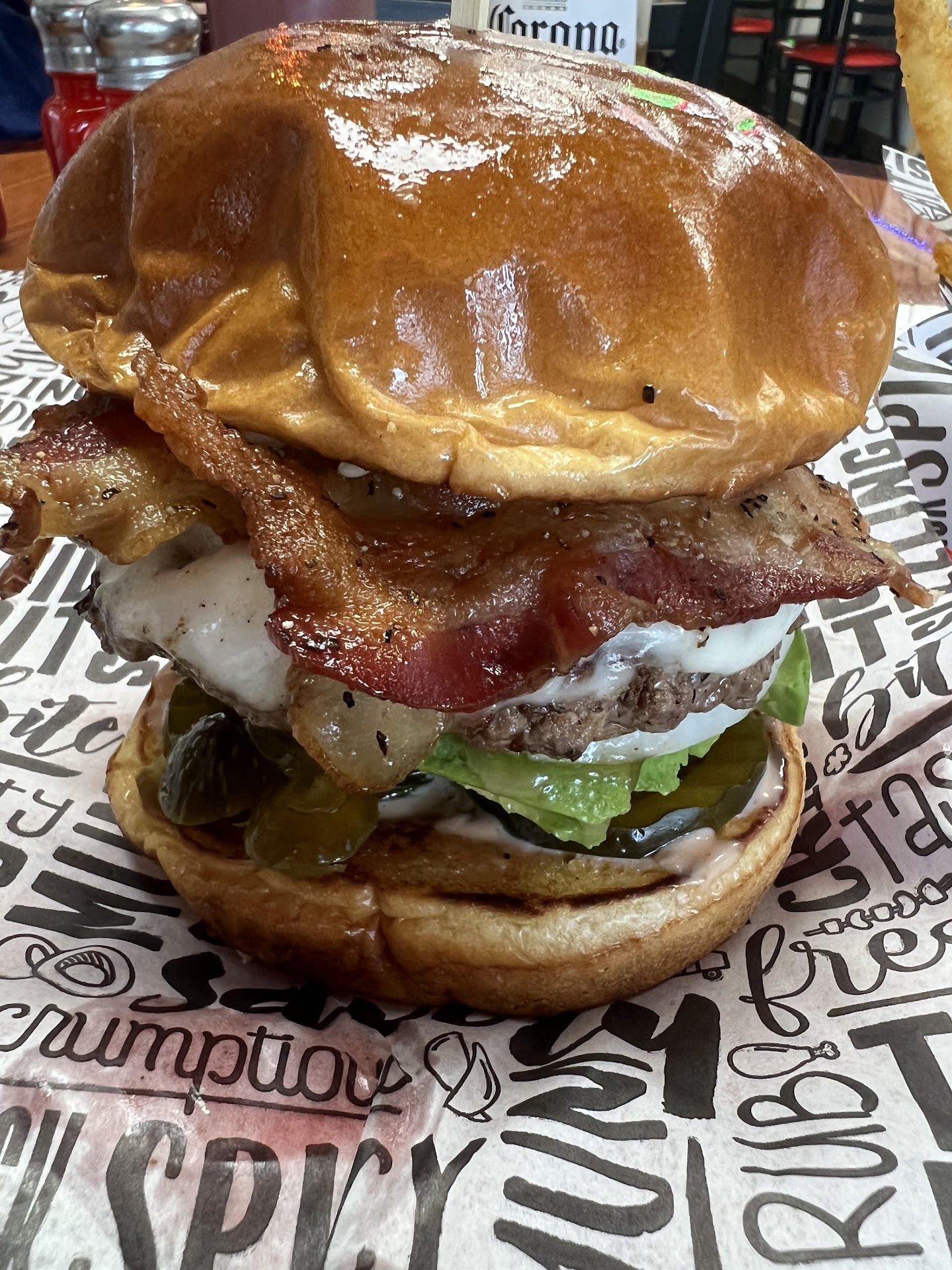 The chicken sandwich was insanely crispy and large, the spice was actually flavorful and had good heat, the buns were nice and toasted, veggies crisp and fresh. My roommate gushed equally on their burger.
