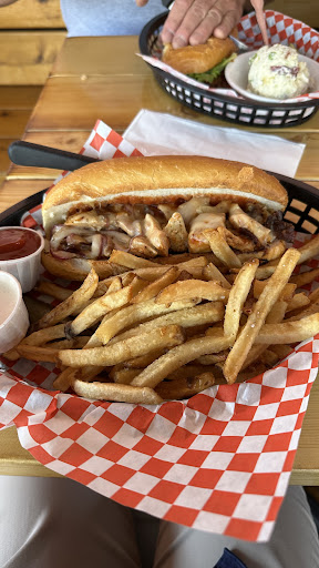 My husband had previously eaten lunch with our son at the Burien location and loved the french dip. He couldn't stop raving about the flavor and the AuJus sauce as it was more like a soup with amazing flavor... So, we thought we would give it a try for dinner... After we ordered, there was a gentlemen sitting to our right who must have been a BF or Husband of one of the staff because after she brought him his food, she continued to stand at his table and eat off of his plate; all while still waiting on other tables. I know this doesn't seem like it should be a big deal but , we couldn't help but watch her lick the sour cream off her fingers and then continue to serve other people. Not to mention this was also coupled by another patron walking her dog right through the restaurant, where then, our server proceeded to pet and get licked on her face and hands by the dog; she also did not washing hands before grabbing food from the order station. I do get that this is supposed to be a "biker bar" but if you are going to serve gourmet sandwiches at a high price, you should probably make sure the staff washes their hands and uses their breaks to eat dinner with loved ones, as this was very tacky, unprofessional and unsanitary. All of that said, no, I would...