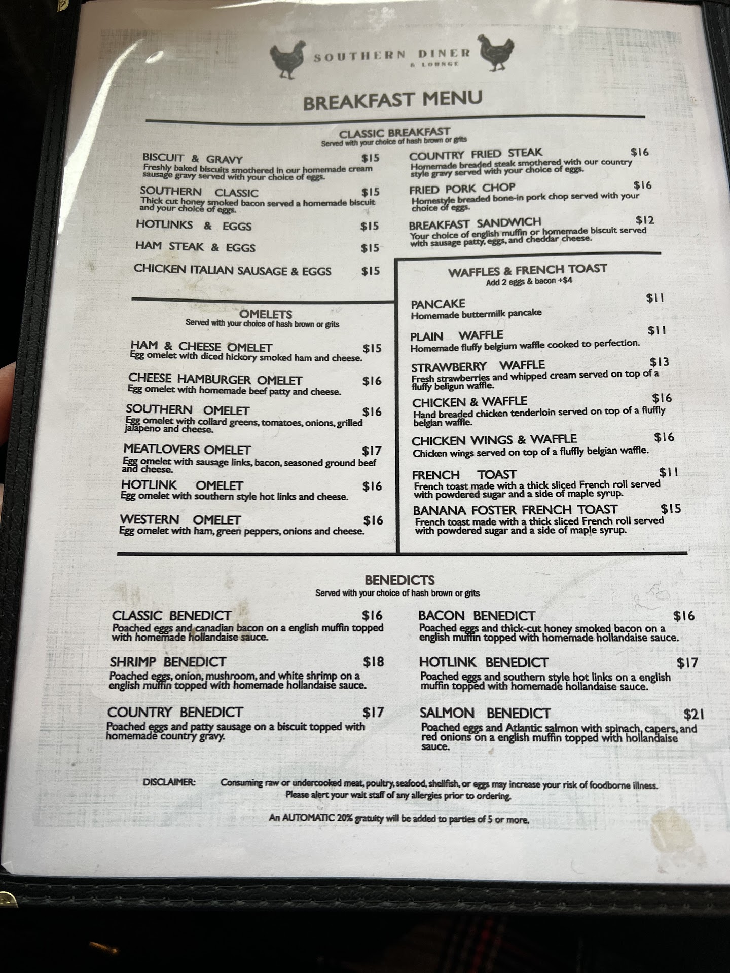 Southern Diner has only recently opened and has limited hours for now: 5 to 10 pm, Thursday through Monday, closed Tuesday and Wednesday. Although they're only open during dinner hours for now, they serve breakfast as well, and I can't wait to go back and try it!Curiously, when we arrived, the parking lot was almost full. We almost drove away, worried about dining in a crowded space, but decided to hop out and check to see if it felt safe or not. It turns out that the restaurant was empty, we were the first patrons of the evening. I'm so glad we decided to give it a try. Please, Burien, give this place a try...I don't want it...