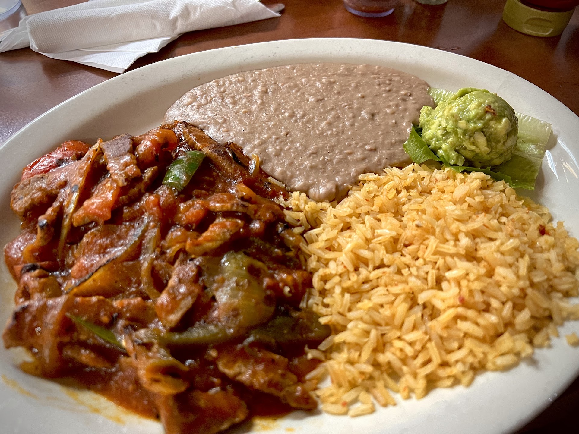 The reason for the three stars is for my food. I paid $16 for a plate of food and I could only eat half. It was bland. The plate I ordered was Steak Guisado and thereâs no way the salsa they used is made fresh in restaurant. Just tasted like they poured the salsa they bring with the chips and salsa and sautĂ©ed some veggies and called it a day. The meatâŠ. I could just imagine what Gordon Ramsay would think just by looking at it. Paper thin and it took me forever to chew. It was hard to bite despite the fact that it was paper thin. Itâs as if they scraped it off the walls of a deep freezer. I didnât dare eat the veggies after one bite. Beans and rice are bland but went the worst.