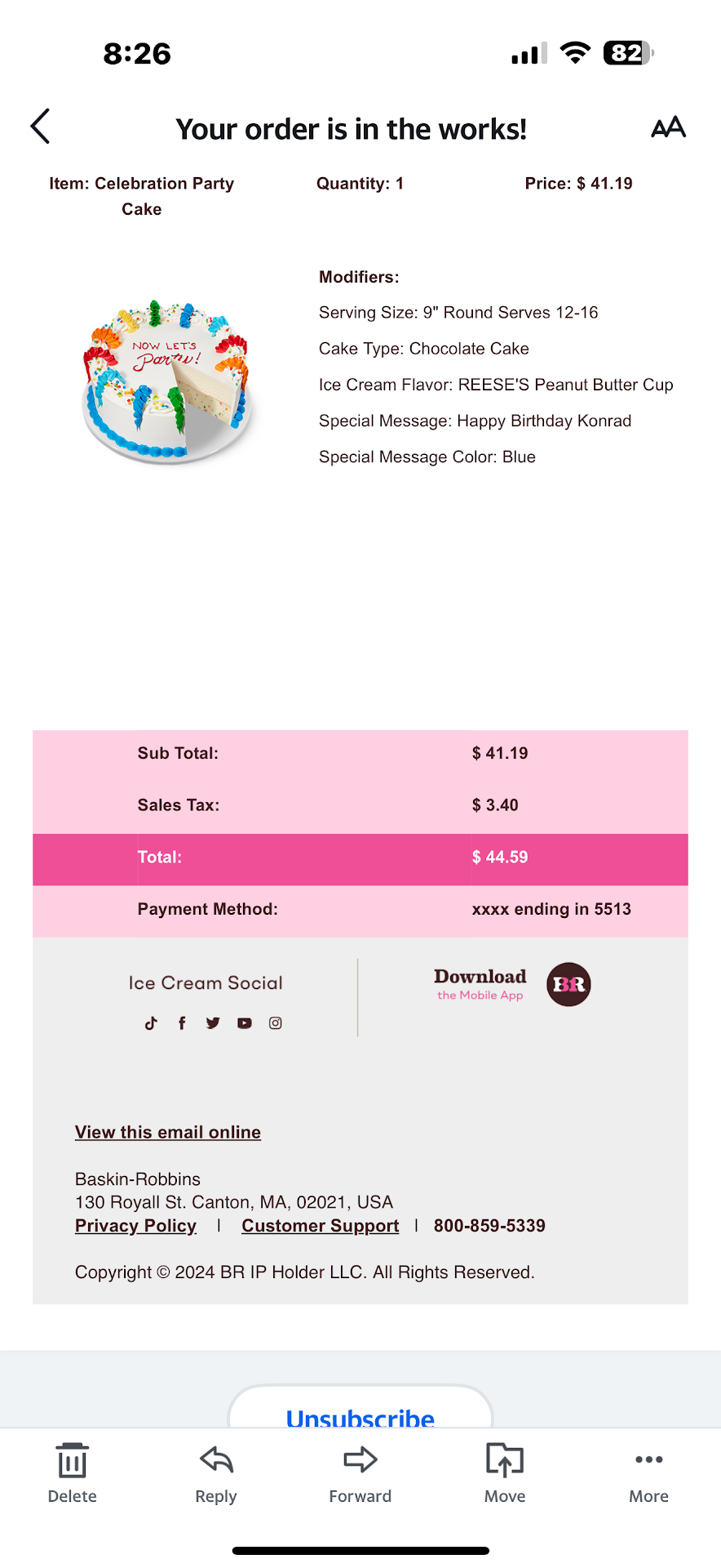 Iâm very disappointed with the service I received here yesterday i donât ever complain about business but I have to say something I ordered and paid for a birthday cake for my husband a week prior an ice cream cake so 30 minutes prior to pick up they call me and said theyâre out of the ice cream we selected and offered some of the flavors the had at the store no biggie we improvised and I show up and was presented with this horrible cake 20 minutes past pick up time and after 4 attempts and telling them I have a house full of guest and food in the oven itâs 45 mins past the pick up time to decorate a melted cake that was assembled in an hour i was told they canât do anything else . It wasnât round and the ice cream we ordered wasnât what we asked for and they gave it to us in 2 new boxes cause it was so melted the cake literally looked like it was crying then I was told to grab 2 pints of ice cream ( it was chocolate peanut swirl ice cream by the way minus the peanut butter cup candies ) in the pint size and then given a cake that wasnât even the cake I ordered and no other option or resolution so I took it home .I was so humiliated for my husband to see his cake and all of our guest said it was awful making the embarrassment worse but all the other cakes they had made that day that were in the fridge were great looking and ours was a last minute put together the manager wasnât there but was called over the phone and told the employees that it takes 3 days for the cake to fully set .canât make it same day . Never offered a discount or refund either so unprofessional hopefully this doesnât happen...