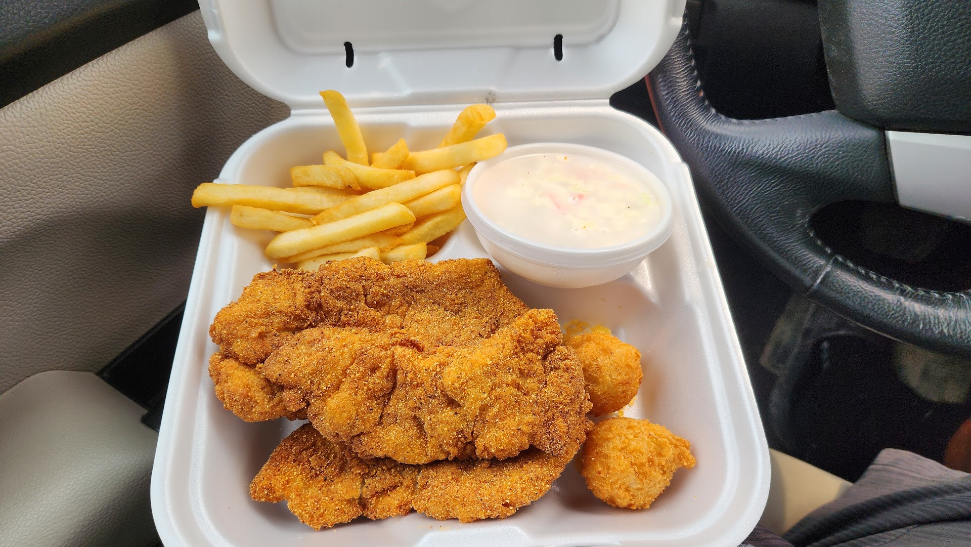 The hush puppies were crunchy but moist on the inside