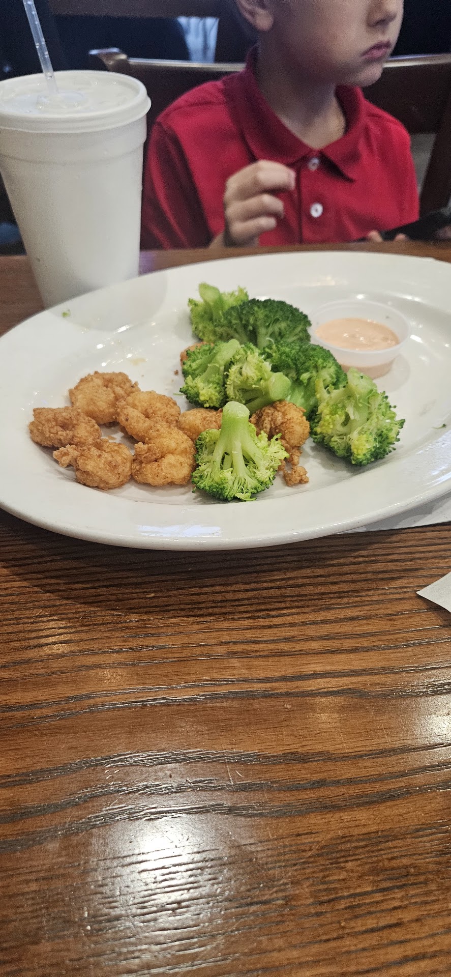 First visit here. The food was just ok. My main issue was that the batter/breading didn't stick to the catfish. They were really friendly but there is such a thing as too much attention. The waitress kept bragging about the food and how fresh it is and that it's the best place in johnson county... I think we can do better though. Main dish was great other than the catfish. I had grilled shrimp (cooked and seasoned perfectly), the fries were nice and crisp on the outside, the fried oysters were nice and it seemed like the same corn meal based breading and no issues with those. The cocktail sauce had a little too much horseradish for me but still good. Fried artichokes were good. The waitress brought us a complimentary oyster nachos and while they were decent, it was just too much. The roumalade was great and the oysters were great but they didn't need the Pico, the chip, or the big chuncks of jalapeno. It would have been perfect on just a piece of crunchy lettuce with the sauce only. We also got a soup sampler and this was were it's at... the crab bisque and jalapeno soups... to die for. The clam chowder wasn't bad but I've had better and the gumbo was way too salty. It was kind of loud but not too bad. More of a sports bar kind of vibe. Staff kept going out to the patio area but no one was seated out there. And at one point a lady got on the bar to pull a bottle of alcohol down (not complaining, it just seemed out of place). The ribeye was under seasoned and over cooked, and the sides just werent that good. The sides were asparagus (not stemed so the hard chewy fiberous part was left on, and they were only seasoned with what looked and tasted like red chili flakes... and im guessing what was suppose to be roasted potatoes, but they were not cut uniformly so some pieces were great and others undercooked. I probably...