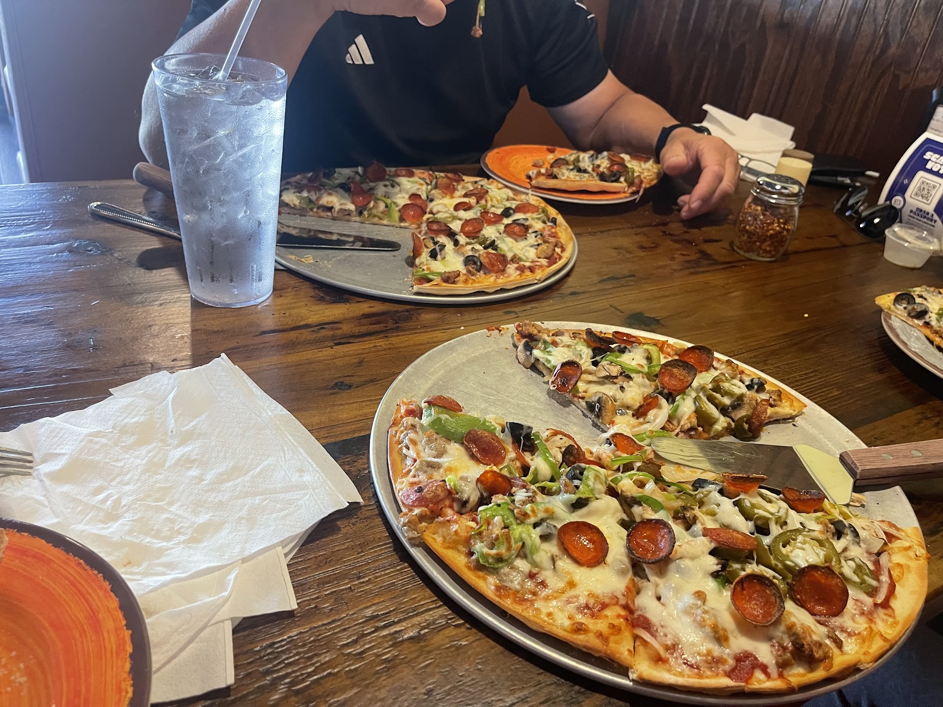 Read moreBurleson is my hometown. Iâve lived here most of my life. And in a town full of chain restaurants, I love finding a new family owned place that we can add to our regular list! (Itâs even more special when one from my childhood is saved!) Both times Iâve visited the pizza was delicious. I wouldnât call the crust âthinâ and I normally like a good thin pizza so that wouldnât be a bad thing to me. This crust is substantial but in no way soggy - thereâs a little crisp to it because the bottom was cooked just the way I like it. Like the perfect mix of what I like about thin and thicker crusts. Iâm a vegetarian and love green olives, I am so thankful they have them, because some pizza places only have black olives now. And there was the perfect amount on my pizza! Service is always friendly and when my family of 8 came on a Friday night, it was packed but they got us in quicker than I expected, keeping us informed the entire time. To top it off, the decor feels reminiscent of my younger days when the pizza place was a good place to hang out with friends and family. Not to mention, bathroom was spotless...