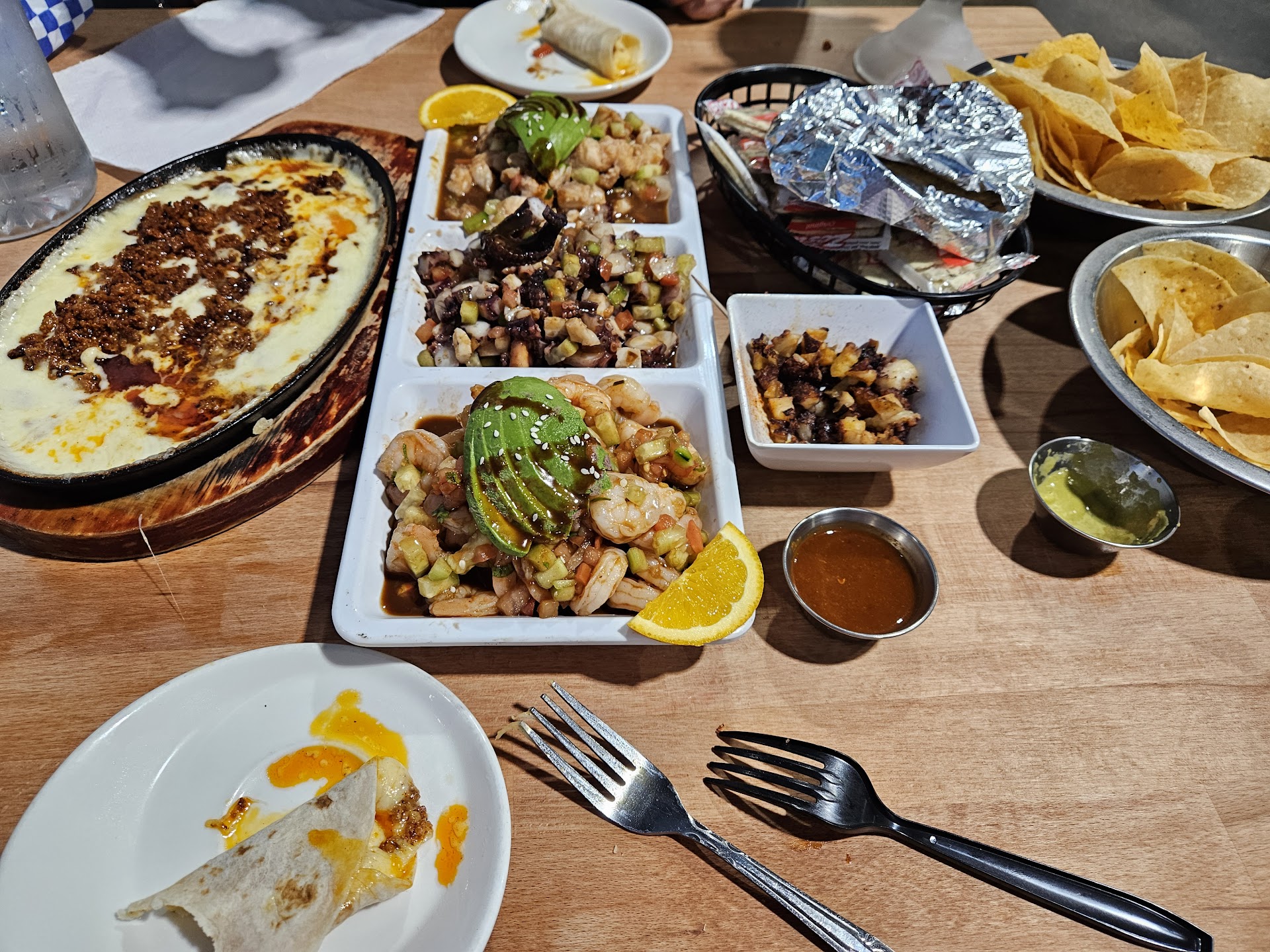 My husband and I enjoy trying out new restaurants. So on a Thursday evening we drove to a refurbished Mexican Seafood restaurant in Burleson. It wasnât crowded, so we were immediately set at a table. Chips and salsa were served very quickly, but we sat for about 5-7 minutes before our waitress came around. We asked her for some water at which time we were made aware she spoke no English. Luckily, between my husband and I, we were able to get our request for âaguaâ made, but we speak very little Spanish and she spoke no English. Therefore asking questions about any of the dishes wasnât going to happen. Each of us decided to have a single drink while we perused the menu. We finally decided on 3 appetizers we were going to share. The food was served fairly quickly, but we had to remind our server about the aqua we had never gotten. She finally brought 2 glasses of water after the meal was served. The food was ok. The oysters were the smallest I had ever seen and werenât loosened from the shell, making it virtually impossible to get the meat off the shell without tearing it to pieces. The shrimp cocktail was very tasty though. It had an adequate amount of shrimp in the sauce and fresh avocado slices on top, the shrimp tostada was basically shrimp and sauce on a floppy corn tortilla. As we finished what we were able to eat, we requested the check from our server. We had to ask 3 times for the check due to the language barrier. When she finally brought the check, we were dumbfounded! 2 drinks and 3 small appetizers and the check came out to $96, without a tip. The 8oz drinks were $15 each, you can go to another local Mexican restaurant and get a grande margarita for less than $10. Overall we were ok with the food, but the prices will prevent us from ever going back. If they donât make some changes, I donât see them being...