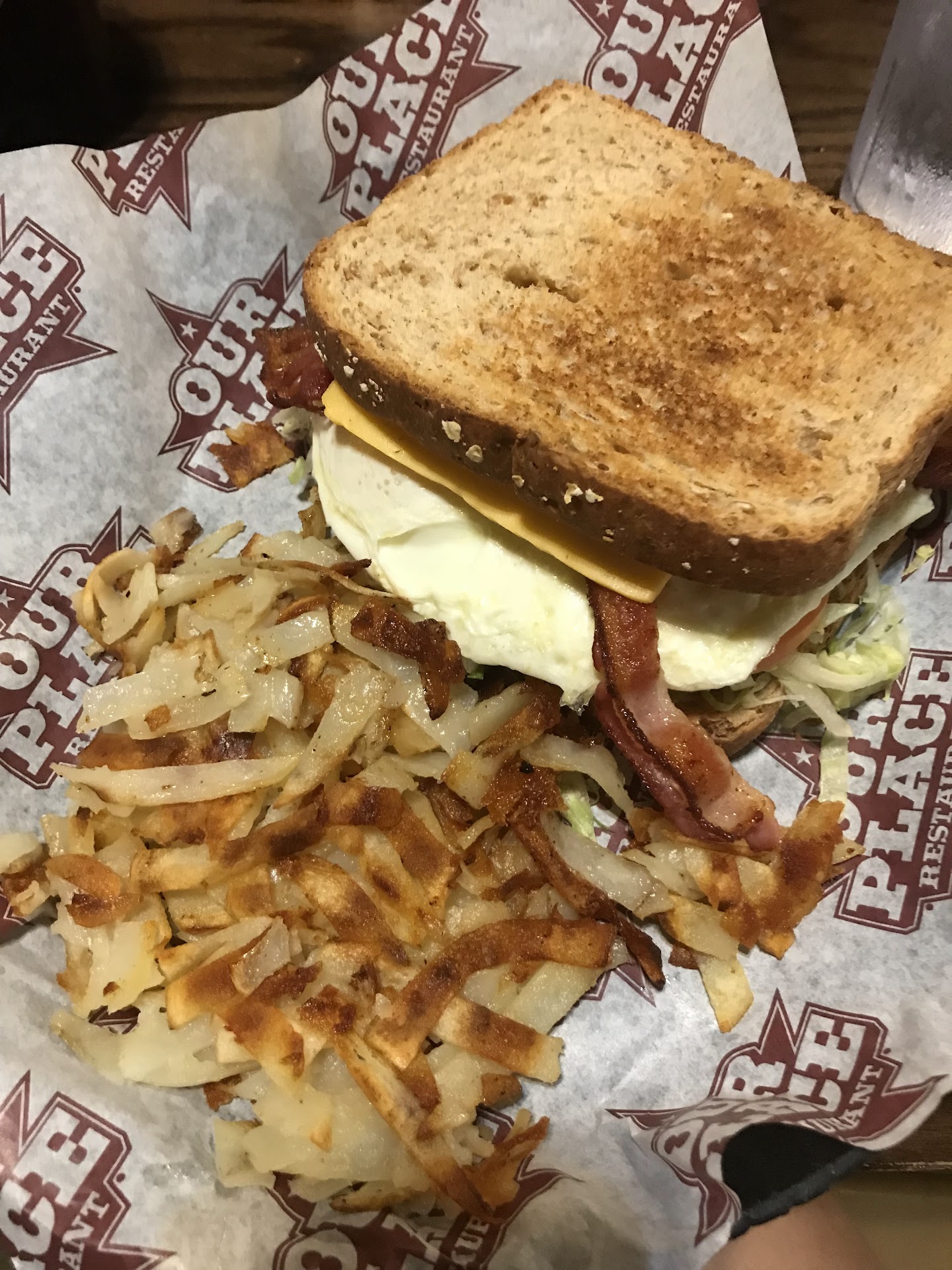 As usual I chose the breakfast sandwich on wheat bread (so good!), bacon, over easy egg and hash browns. It’s my favorite dish! The egg was cooked perfectly- making a mess of course. The hash browns are always something special with the way they are shaped wide yet thin. My husband always has an omelet as they are large and fluffy. This time, as he normally does, he asked for Swiss cheese and it came out with what looked like cheddar. We’re unsure what happened but this is the first time we had something like this happen. He ate it anyway. My mom had the our place special with scrambled eggs, bacon and pumpkin pancakes. Wow those pancakes were good! Not overwhelmingly pumpkin and extra thick and fluffy like their buttermilk ones. I wish they had come on a separate plate so that it would be easy to not get them all covered in syrup and take the leftovers home. My dad had the chili scrambler and raved about it with only one issue of some of the hash browns being way too crispy they were inedible. Definitely need an empty stomach when coming here!