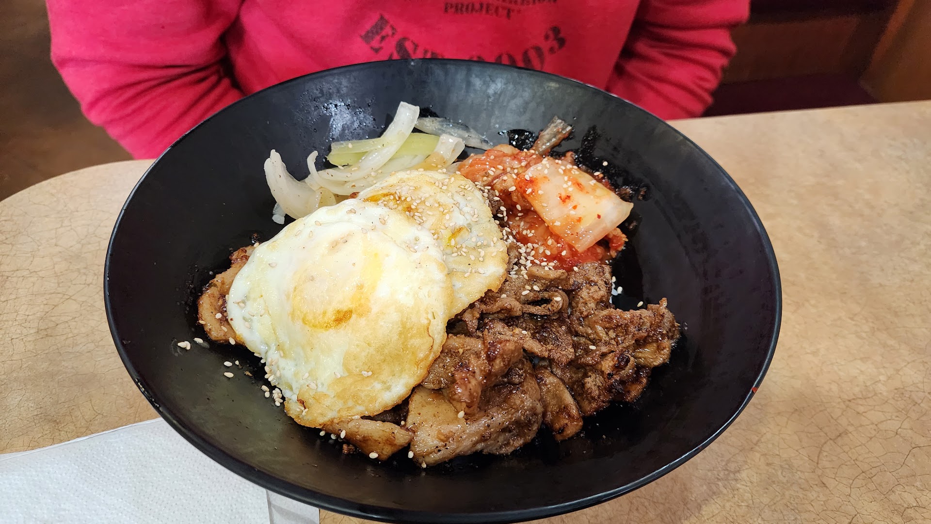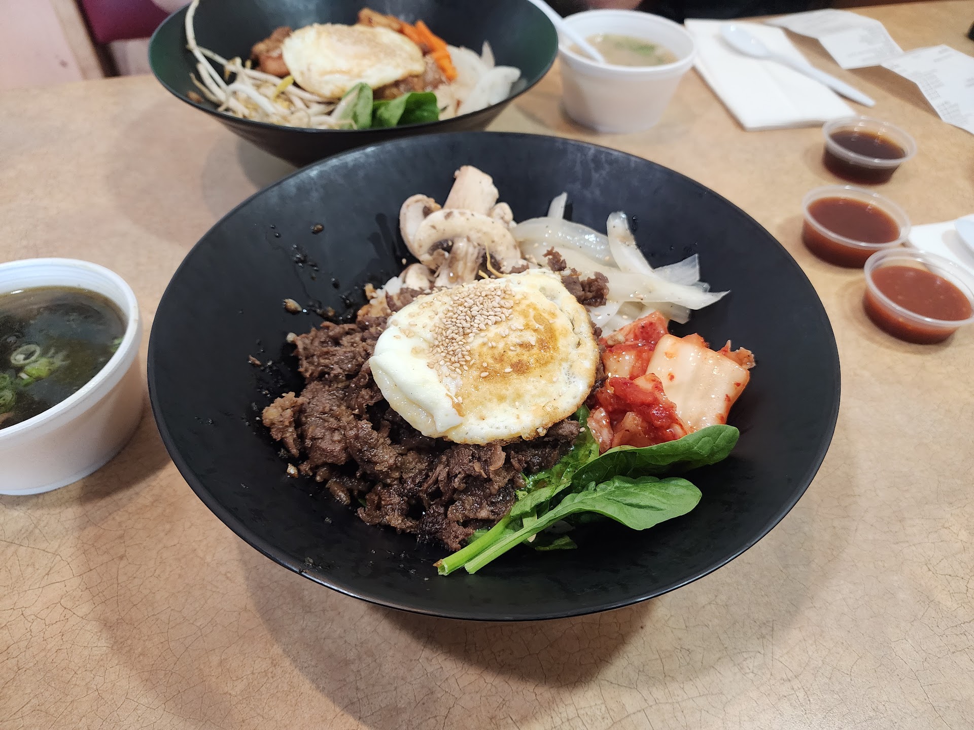 I was really disappointed with both the service and the food itself. I let the cashier know it was my first time and was trying to figure out their system but she just answered in a very low voice that we should start the order so I could get it. She then asked me for the items without explaining and I had to keep stumbling over my order as I figured it out on my own. I was confused by their layout and again her low tone made it difficult to understand added to the fact that she had an attitude that made it feel like she didn’t want to explain made it hard to ask her to explain once more or repeat herself. The food itself was okay at best, the sauce she picked for me wasn’t the traditional it was more of a sweet teriyaki like concoction together with spicy Mayo which was good but not was I would prefer for bibimbap. The meat tasted like bulgogi when I asked for spicy and the rice was dry and stale. Their mushrooms and spinach were undercooked and nothing had any toasted sesame oil that I could taste. I know I wanted authentic bibimbap and that affected my impression but even a twist on the traditional would have been fine if it was cooked with more care and originality, this just felt like old rice with half cooked vegetables and bulgogi thrown on top. Other staff was friendly but left the original cashier to take care of our order so can’t speak for...