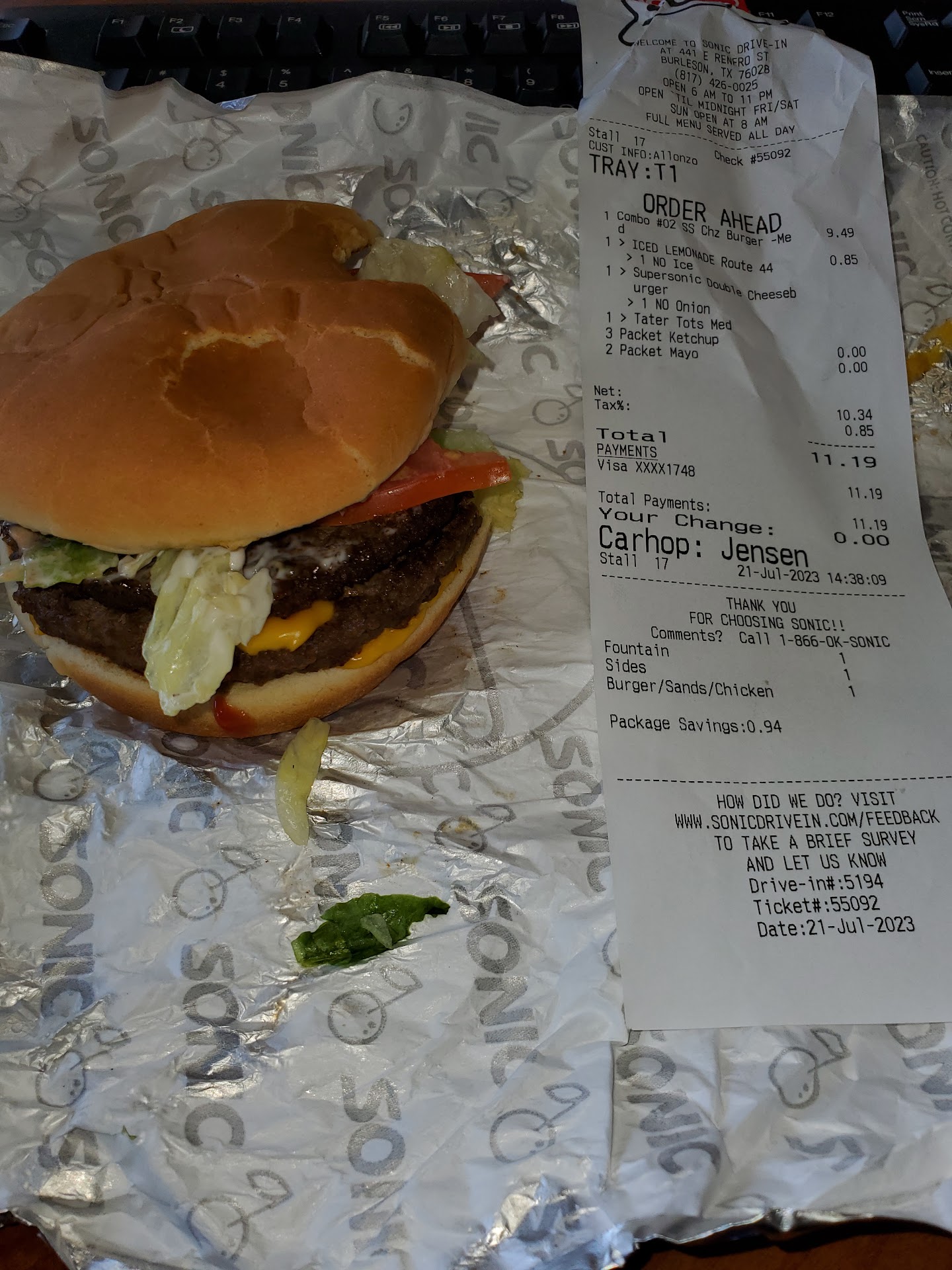 Read moreMy food today had an aftertaste so bad that even after I flossed and brushed my teeth the taste is still in my mouth. My advice is do not eat at the sonic at 441 E. Renfro St. I am not lying about anything. Got my food at 5pm on Feb 24, 2024. I am not going to write what I ate. I am just hoping I don't feel sick tomorrow. If you get sick after eating there, do not be afraid to go here and write down what happened. This sonic is a " sketchy" sonic. Do not be fooled by the outside appearance. Weird things happened to me there before and as I said, so long as I am not sick on Monday I will say a prayer and never return to any sonic for a long time. Do not write any complaints using their feedback link because what probably happens is they are aware you complained and they will retaliate and I do not want to read any reply from the manager of that restaurant. My advice: stay away from that location. There is a rogue employee there who...