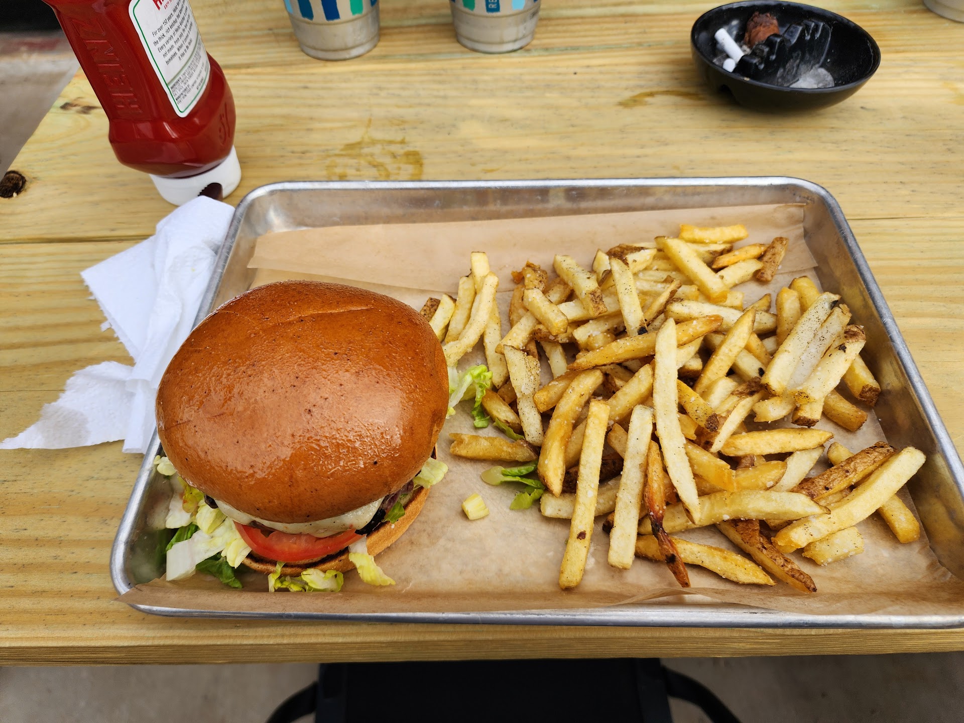 Read moreThe first time we came here it was great, cold mugs and food was delicious. Second time we waited for 32 minutes for beer that we ordered using the QR code (which you have to pay then or open a tab) because the wait staff only went to the tables with their friends there. Our appetizer came well before the drinks, and after asking the staff who brought it if we could get water and asking if the order went through for our beer, they went to check and never came back. After waiting 20 more minutes and still not getting water, I went to the bar myself to ask and then she turned around saying “I’m getting it now” and the beer was served to us in plastic cups. It was 90 degrees outside. Some tables had mugs so if it’s a schooner quantity issue that should seriously be fixed because I think going out for a drink and paying bar price, that warrants an actual glass. Also people just let their kids run wild outside on the yard part, and multiple dogs...